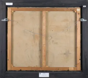 – na dolnej listwie krosna nalepka (tusz): Nr. Inw. 117. | Wł. Tetmajer | Zaręczyny.