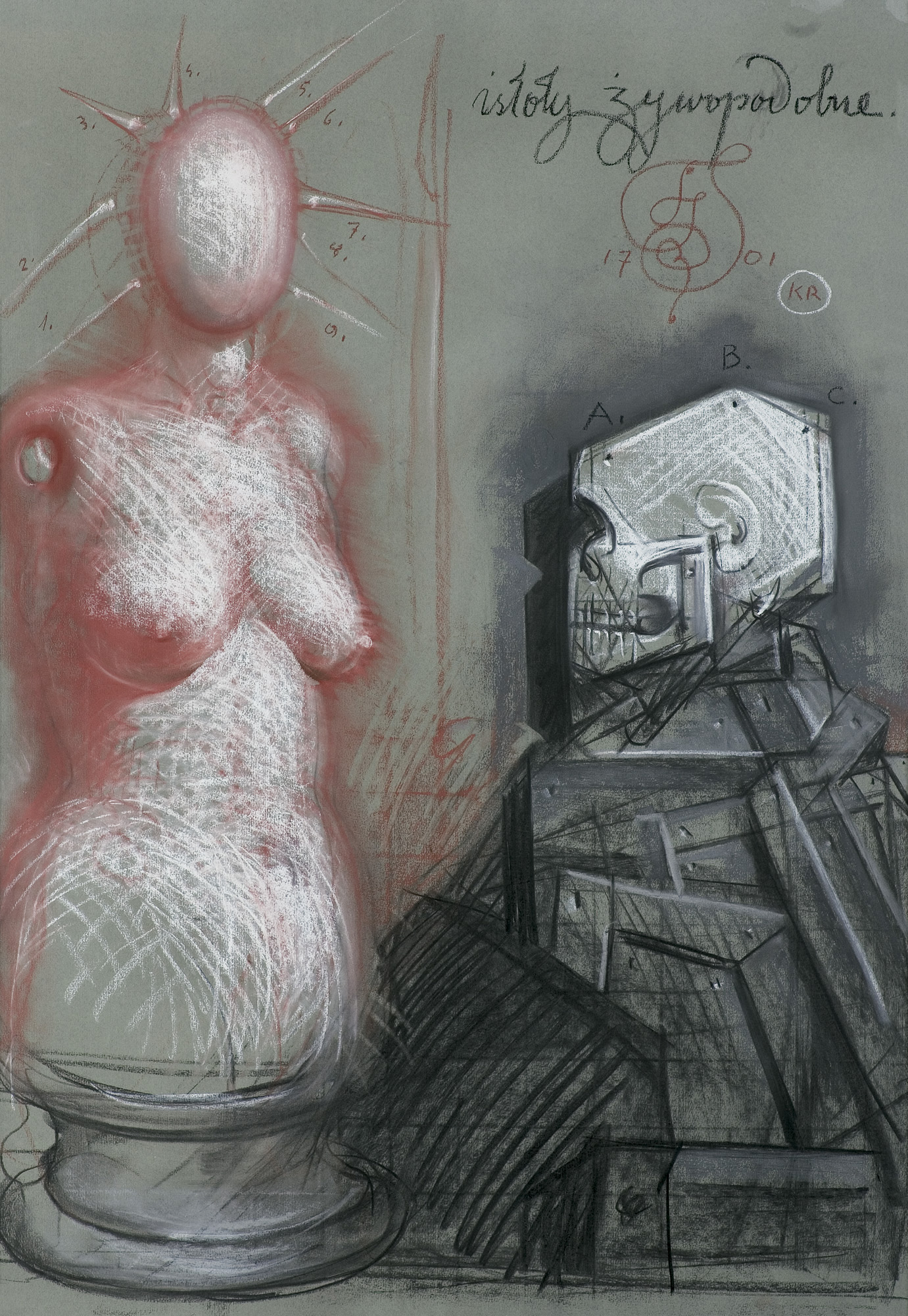 Franciszek Starowieyski (Bratkówka koło Krosna 8 VII 1930 – Warszawa 23 II 2009), używający pseudonimu Jan Byk, studiował w latach 1949-1952 w ASP w Krakowie pod kierunkiem prof. Wojciecha Weissa , po czym kontynuował studia w ASP w Warszawie, uzyskując w 1955 dyplom w pracowni prof. Michała Byliny. W latach 60. i 70. największe uznanie zdobył jako twórca plakatu, w którym szybko dorównał koryfeuszom tej dziedziny sztuki w Polsce. Uprawiał plakat typu autorskiego, o rozpoznawalnym stylu bazującym na zamaszystym i zarazem kaligraficznym rysunku, przede wszystkim zaś zaskakujących, surrealistycznych skojarzeniach. Od 1964 był kierownikiem artystycznym modnego miesięcznika „Ty i Ja”. Z czasem przewagę w jego dokonaniach zdobył „czysty” rysunek, od 1980 często prezentowany w formie dynamicznych seansów tzw. Teatru Rysowania, z udziałem modelek, publiczności i samego artysty, spełniającego się w nim w roli demiurga. Tworzył wiele kompozycji malarskich i rysunkowych emanujących surrealną atmosferę życia na skraju fizycznego rozpadu, będących współczesną wersją tematu vanitas. Zafascynowany kulturą baroku, artysta od 1970 antydatował wszystkie prace o 300 lat wstecz. Artysta był laureatem licznych nagród, które zdobywał m.in. na takich wystawach, jak Biennale Sztuki w Sao Paulo 1973, Międzynarodowa Wystawa Plakatu Filmowego, Cannes 1974, „Annual Key Award”, Los Angeles 1978. Wielokrotnie przebywał w Nowym Jorku na zaproszenie Fundacji Kościuszkowskiej. W 1980 był profesorem w Berliner Hochschule der Künste, w latach 90. wykładał w Europejskiej Akademii Sztuk w Warszawie.