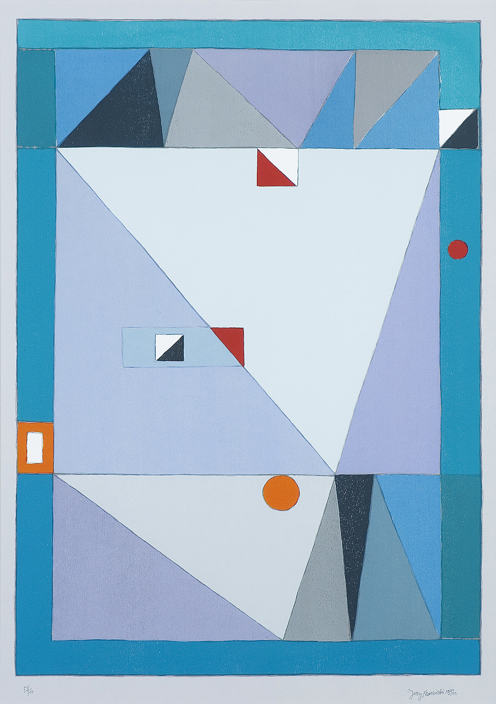 Jerzy Nowosielski (Kraków 1923 - Kraków 2011) w 1940 zaczął studia w Kunstgewerbeschule w Krakowie. W 1942 przebywał przez niecały rok w Ławrze św. Jana Chrzciciela pod Lwowem. Studiował tam sztukę malowania i historię ikon. Po powrocie do Krakowa w 1943 nawiązał ponowne kontakty z kręgiem przyszłej Grupy Krakowskiej. Po wojnie kontynuował studia w ASP w Krakowie pod kierunkiem prof. Eugeniusza Eibischa (1945-1947). Na I Wystawie Sztuki Nowoczesnej w Krakowie w 1948/49 pokazał obrazy utrzymane w nurcie abstrakcji geometrycznej. W latach socrealizmu nie wystawiał, zajmując się w tym czasie scenografią oraz malowaniem cerkwi i kościołów. W 1955 w Łodzi zaprezentował swą pierwszą wystawę indywidualną, w 1956 wziął udział w XXVIII Biennale w Wenecji. W latach 1957-1962 był pedagogiem w Państwowej Wyższej Szkole Sztuk Plastycznych w Łodzi, następnie w Akademii krakowskiej, gdzie wykładał na Wydziale Malarstwa do przejścia na emeryturę w 1993. W drugiej połowie lat 50. osiągnął charakterystyczny styl aktów, pejzaży i scen figuralnych we wnętrzach, który zawdzięczał swej fascynacji ikoną i doświadczeniom z malarstwem sakralnym. W 1976 podjął na nowo realizacje monumentalne, wykonując m.in. malowidła ścienne, stacje Drogi Krzyżowej i projekty witraży w kościele Opatrzności Bożej w Wesołej pod Warszawą (1976-1979). Artysta powszechnie uznawany był za autorytet w dziedzinie sztuki zakorzenionej w wartościach duchowych.