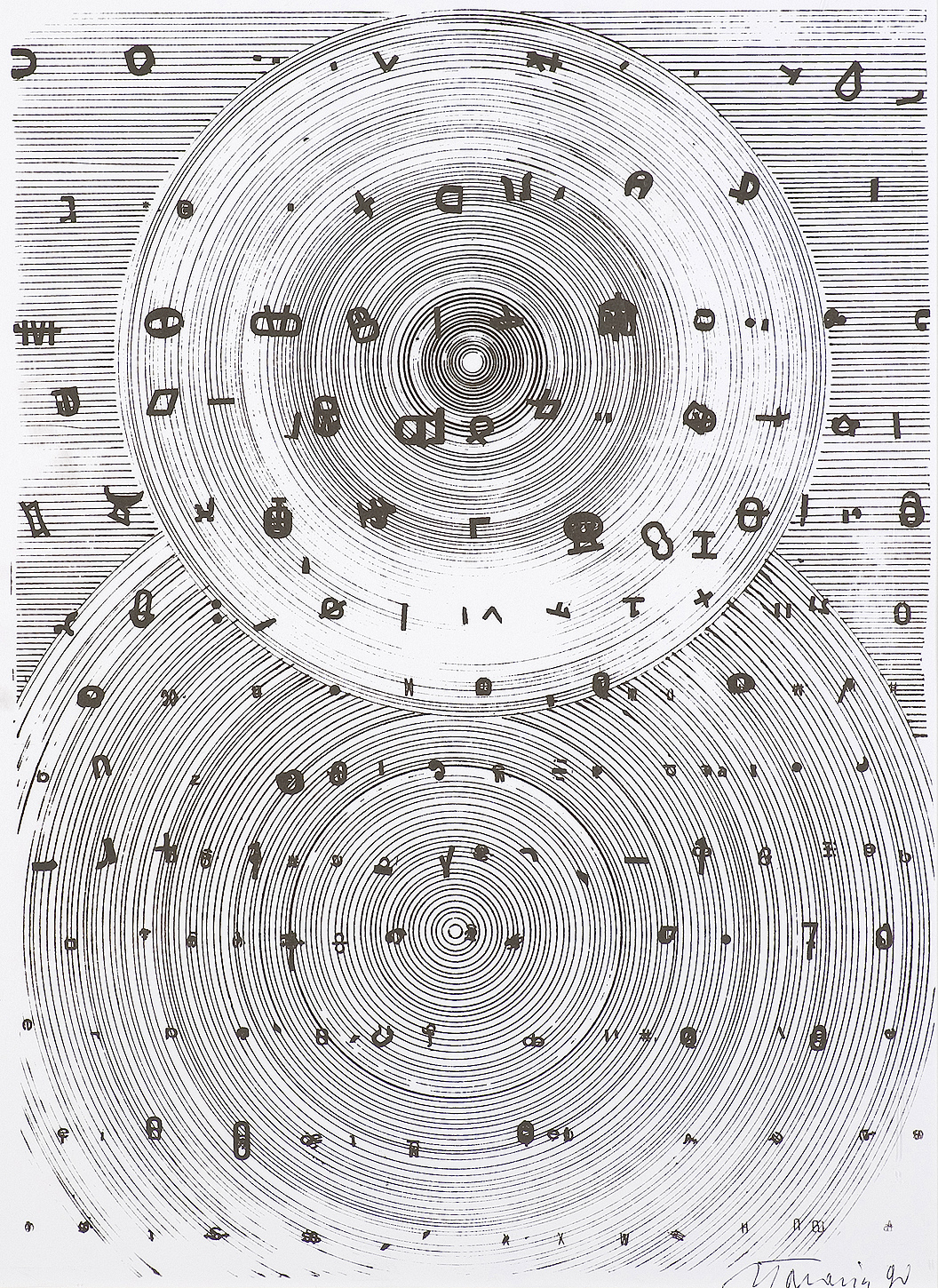 Jan Tarasin (Kalisz 11 IX 1926 - Warszawa 8 VIII 2009) studiował malarstwo w ASP w Krakowie pod kierunkiem prof. Zbigniewa Pronaszki (1946-1951). Jeszcze jako student zadebiutował na I Wystawie Sztuki Nowoczesnej w Krakowie w 1948/49. W połowie lat 50. stworzył cykle litografii: „Nowa Huta i jej mieszkańcy“, 1954, „Dom“, 1955). W pierwszym przeciwstawił się oficjalnemu optymizmowi, w drugim, operując symboliką martwej natury, zawarł treści egzystencjalne i odnoszące do niedawnego dramatu wojny. Po 1956 zaczął malować obrazy niefiguratywne. Układy wyodrębnionych elementów (określanych jako „przedmioty“) umieszczane były przez artystę na płaszczyźnie (cykl „Wnętrze“, 1957) ), lub w aluzyjnej przestrzeni (cykle „Uczta“, 1957, „Brzeg“, 1962-1964, „Przedmioty policzone“, od 1968, „Antykwariat“, 1968). Zasada ta utrzymuje się w jego malarstwie w następnych latach, różnice między okresami twórczości dotyczą sposobu opracowania „przedmiotów“ i ich usytuowania w przestrzeni obrazu lub wobec tła. Od lat 70. „przedmioty“ zmieniają się w graficzne, zwykle czarne znaki na jasnych tłach (cykl „Kolekcja“, od 1971). Tła z kolei bywają iluzyjnie przestrzenne, zróżnicowane walorowo, miękkie. W latach 90. artysta wrócił do kolorystycznego, bardziej malarskiego rozwiązywania zarówno znaków, jak i teł, często ciemnych lub przenikających się z „przedmiotami“ (cykl „Wylęgarnia przedmiotów“, 1992). Tarasin od 1962 jest członkiem „Grupy Krakowskiej“. W 1963-67 uczył na Wydziale Architektury Wnętrz krakowskiej ASP. W 1967 przeniósł się do Warszawy, w 1974 podjął pracę pedagogiczną na Wydziale Malarstwa ASP w Warszawie. W 1987-90 był rektorem tej uczelni. W 1976 otrzymał Nagrodę Krytyki Artystycznej im. Cypriana Kamila Norwida, w 1984 Nagrodę im. Jana Cybisa.; Nagroda na MB Sztuki w San Marino 1965. Równolegle z malarstwem zajmował się rysunkiem i grafiką - do lat 60. litografią, od 1974 serigrafią. W 1974-1981 wydał 8 autorskich „Zeszytów“ z serigrafiami i własnymi tekstami. W 1995 w Galerii Zachęta odbyła się wystawa artysty, której towarzyszył monograficzny katalog.