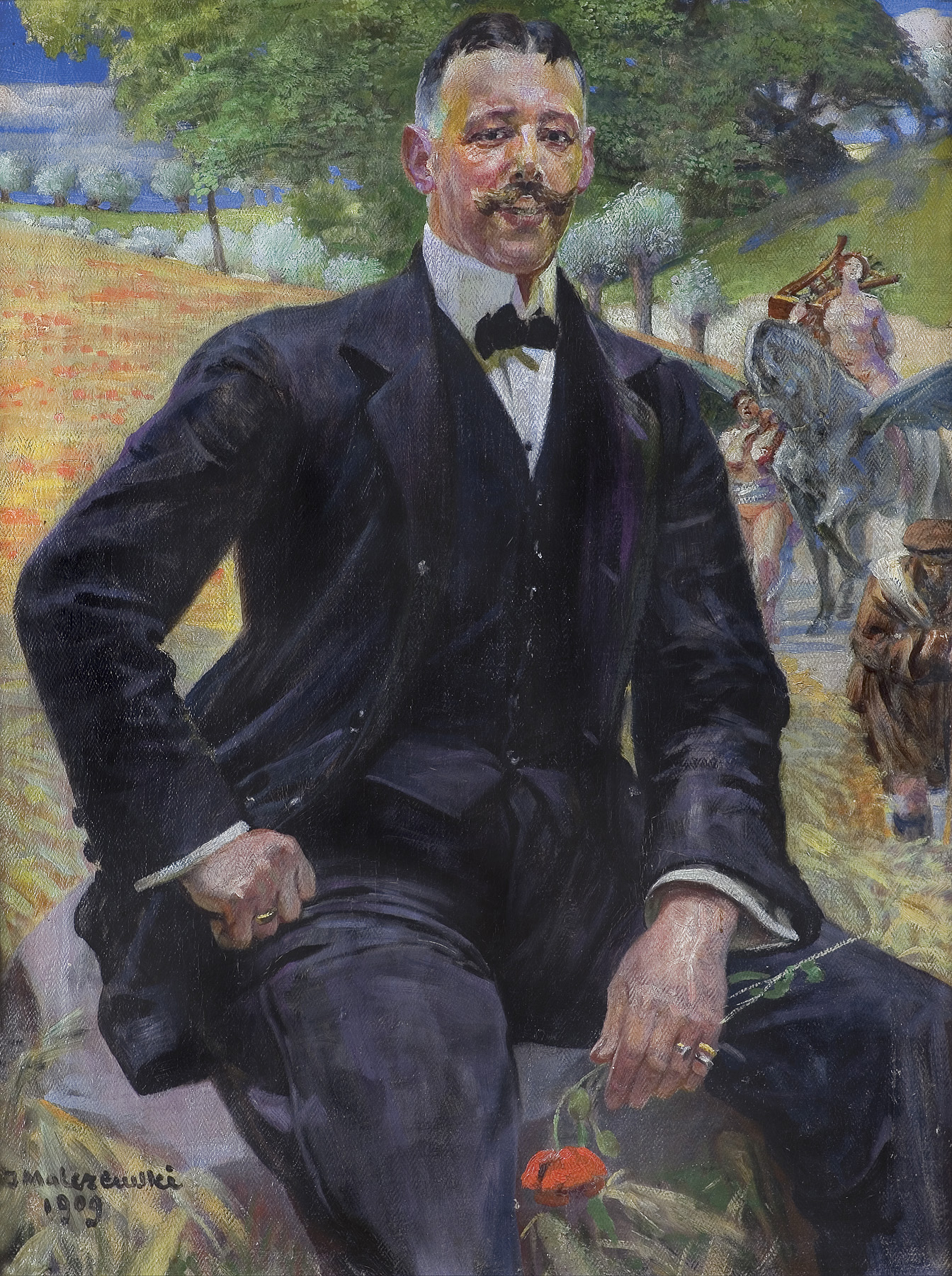Jacek Malczewski (Radom 1854 - Kraków 1929) - wybitny przedstawiciel malarstwa polskiego modernizmu, studia artystyczne rozpoczął w krakowskiej Szkole Sztuk Pięknych, gdzie w latach 1872-1875 uczył się pod kierunkiem Feliksa Szynalewskiego, Władysława Łuszczkiewicza i Jana Matejki, do którego pracowni uczęszczał ponownie w latach 1877-1879. Następnie kształcił się w Paryskiej École des Beaux Arts u E. Lehmanna (1876-1877).