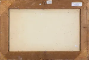 na odwrocie dwie nalepki (na tekturze i na górnej listwie ramy) z numerem odnoszącym się do katalogu wystawy w Centrum Kultury Zamek w Poznaniu (czerwonym cienkopisem): 93; ponadto p.d. dwie nalepki z numerem (czarnym długopisem): 17177/58; na górnej listwie ramy centralnie nalepka wiedeńskiej galerii, obok nalepka aukcyjna Agra-Art z 2007 r.