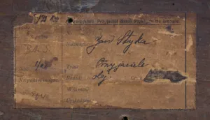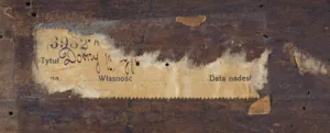 – l.d. nalepka (druk, tusz): Miejska Galerja Sztuki w Łodzi. | Autor | Jan Styka. | Rodzaj pracy | olejny | Nazwa |