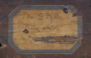 – obok ośmioboczna nalepka (tusz): Jan Styka | Bone amis | F[..] numer wydrapany