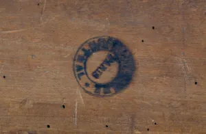– na d. listwie ramy pieczęć celna; obok 2 nalepki z n-rami