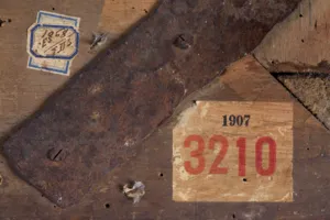 – na g. listwie krosna nalepka z numerem: 5.227 | 1905, obok (niebieską kredką): [...] numer 527 na nim Roma