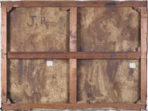 na oryginalnej ramie mosiężna tabliczka z informacją: