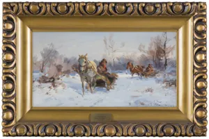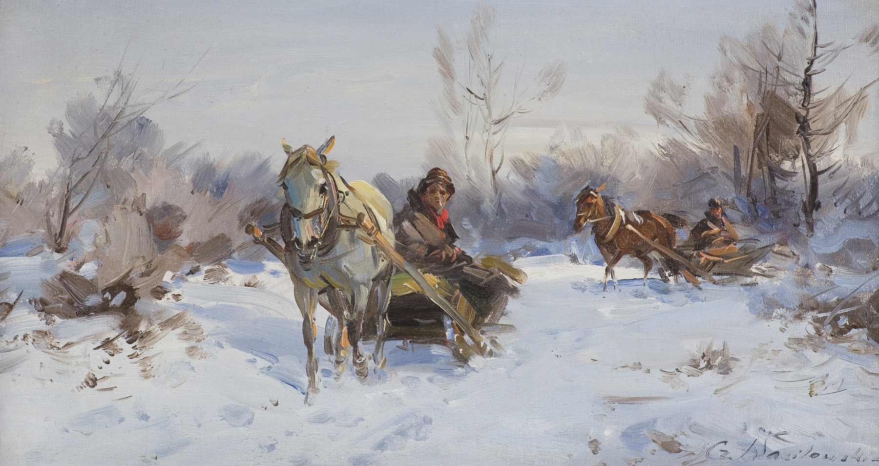 Czesław Wasilewski (ok. 1875 - Warszawa/ Łódź 1946?47) to popularny w okresie międzywojennym warszawski malarz, autor obrazów inspirowanych płótnami Kossaka, Brandta, Chełmońskiego, Wierusza-Kowalskiego czy Fałata. Był samoukiem; wprawdzie w 1911 zapisał się do warszawskiej Szkoły Sztuk Pięknych, ale o jego studiach nic bliższego nie wiadomo. Być może uczęszczał tam (1913-1917) do pracowni Wojciecha Kossaka, dla którego później, na początku lat dwudziestych, przygotowywał podmalówki do obrazów. Uczestniczył w wystawie w Lublinie (1922), wystawiał na Salonach warszawskiej Zachęty (1925,1926, 1927), w Katowicach (1926), Częstochowie (1927), Gdyni (1929), Kaliszu (1931), Poznaniu (1928, 1931). Malował przede wszystkim liczne zaprzęgi, sanny, wyjazdy na polowania, wypadki w podróży, ułanów na patrolu, łosie, sarny i dziki w lesie. Tworzył także nastrojowe pejzaże, wyraźnie inspirowane malarstwem J. Chełmońskiego Rzadziej malował także kwiaty i martwe natury. Utożsamiany z malarzem o nazwisku „Zygmuntowicz”, którego prace pojawiały się na rynku sztuki od trzydziestych lat XX wieku. Stawiany przed tym nazwiskiem inicjał I. lub F., sugerować może imię Ignacy lub Franciszek. Sylwetkę malarza bliżej omówił S. Bołdok w artykule Malarz o dwóch nazwiskach (Art and Business 1992, nr 7-8, s. 48-49).