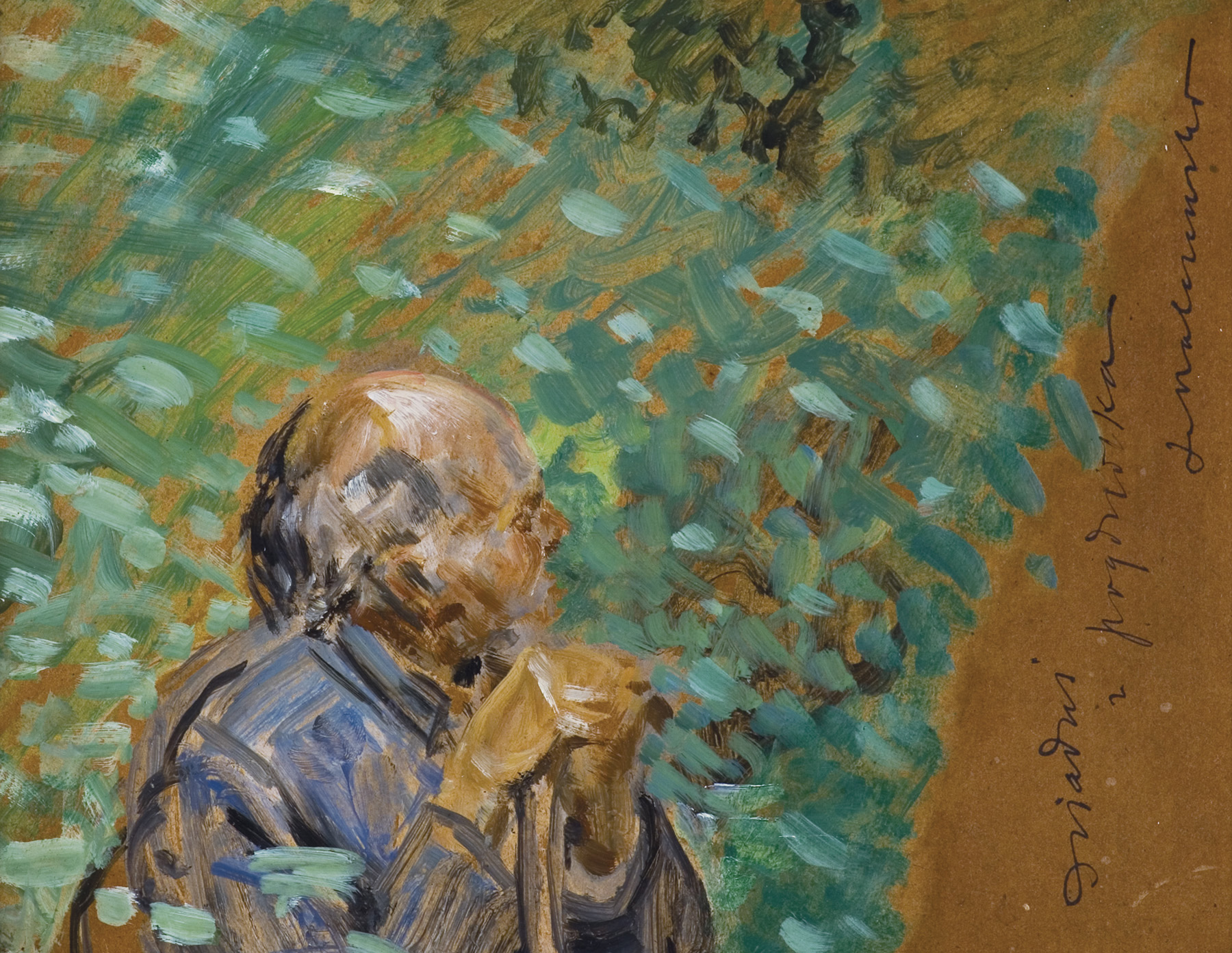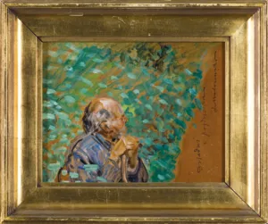 Jacek Malczewski (Radom 1854 - Kraków 1929) - wybitny przedstawiciel malarstwa polskiego modernizmu, studia artystyczne rozpoczął w krakowskiej Szkole Sztuk Pięknych, gdzie w latach 1872-1875 uczył się pod kierunkiem Feliksa Szynalewskiego, Władysława Łuszczkiewicza i Jana Matejki, do którego pracowni uczęszczał ponownie w latach 1877-1879. Następnie kształcił się w Paryskiej École des Beaux Arts u E. Lehmanna (1876-1877).