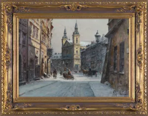 Władysław Chmieliński (Warszawa 1911 - Warszawa 1979) był malarzem związanym z Warszawą, gdzie stale mieszkał i pracował. W latach 1926-1931 studiował w warszawskiej Miejskiej Szkole Sztuk Zdobniczych i Malarstwa (dawna Klasa Rysunkowa). Wiodącym tematem jego obrazów były widoki miejskie, malowane olejno i akwarelą. W latach 1935-1938 stworzył cykl akwarel przedstawiających obiekty polskiej architektury; wśród nich, widoki Sandomierza, Krakowa, Kazimierza nad Wisłą, a także wnętrza zabytkowych kościołów czy pałaców, m.in. Zamku Królewskiego w Warszawie i Pałacu w Wilanowie. Malował także pejzaże i wiejskie sceny rodzajowe – kuligi, sanny, zaprzęgi, wesela, konie na tle krajobrazu. W latach 1967-1969 wyjeżdżał na dłuższe pobyty do Danii. W latach 1936-1939 artysta używał także pseudonimu „Władysław Stachowicz”.