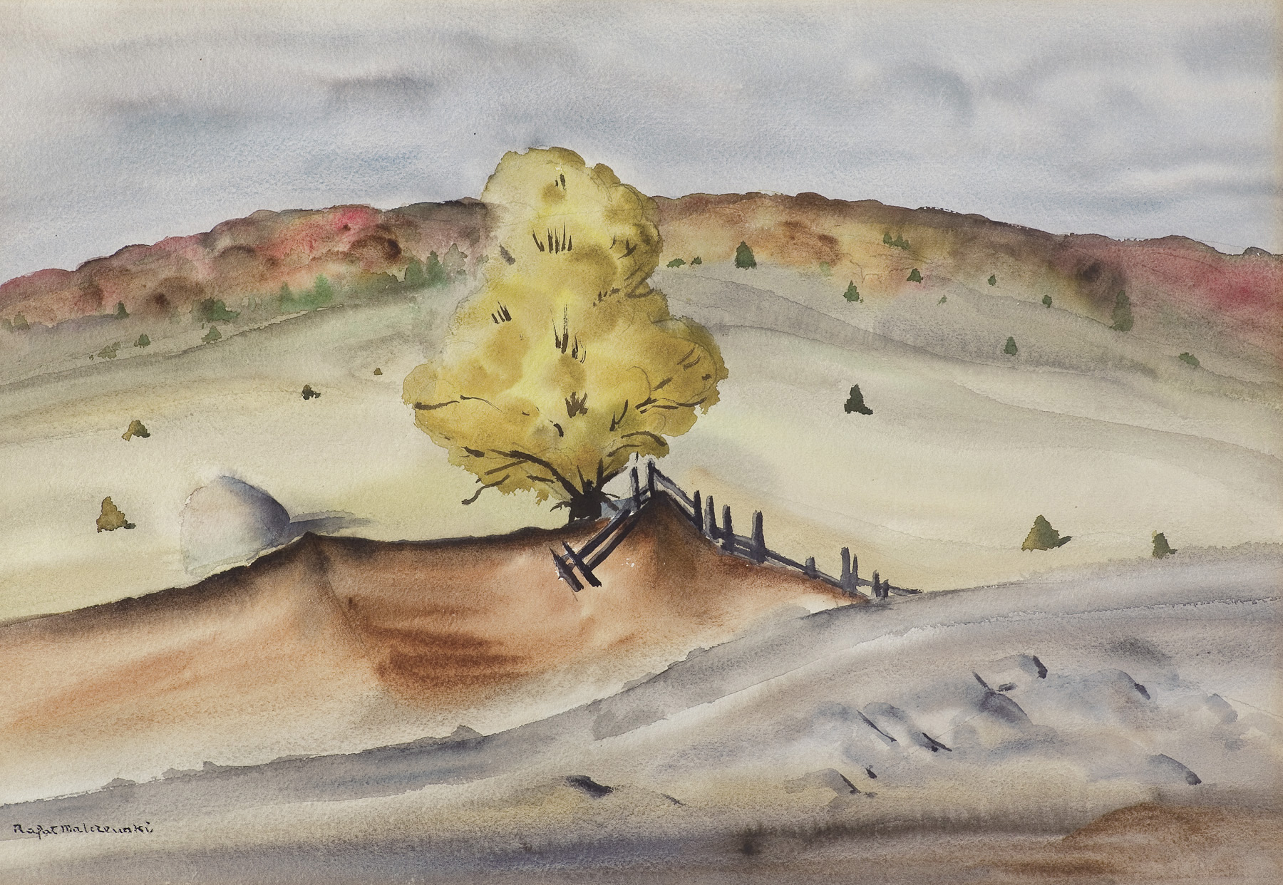 Rafał Malczewski (Kraków 1892 - Montreal 1965) studiował w Wiedniu agronomię, filozofię i architekturę; uczęszczał także do tamtejszej Akademii Sztuk Pięknych, ale edukację artystyczną zawdzięczał przede wszystkim ojcu, Jackowi Malczewskiemu. W latach 1917-1939 stale mieszkał w Zakopanem; był zamiłowanym taternikiem. W roku 1930 wyjechał na półroczny pobyt do Francji. W grudniu 1939 przez Słowację i Węgry przedarł się do Francji, skąd następnie wyjechał do Brazylii a później Stanów Zjednoczonych. W 1942 dotarł do Montrealu, gdzie pozostał na stałe. Począwszy od 1919 r. wiele wystawiał; od 1934 r. także jako członek ugrupowania „Rytm”. Malował przede wszystkim krajobrazy – z Tatr, Podhala, widoki z małych miasteczek i z fabrycznego Śląska, później także z Brazylii i Kanady. W swoich obrazach – świadomie prymityzowanych, utrzymanych często w poetyckim i bajkowym nastroju – bliski jest sztuce naiwnego realizmu. Malczewski był również literatem, autorem artykułów o sztuce, felietonów, esejów oraz wspomnień tatrzańskich i zakopiańskich, m.in. „Narkotyk gór”, „Góry wołają” czy „Pępek świata”, książką napisaną już w Kanadzie.