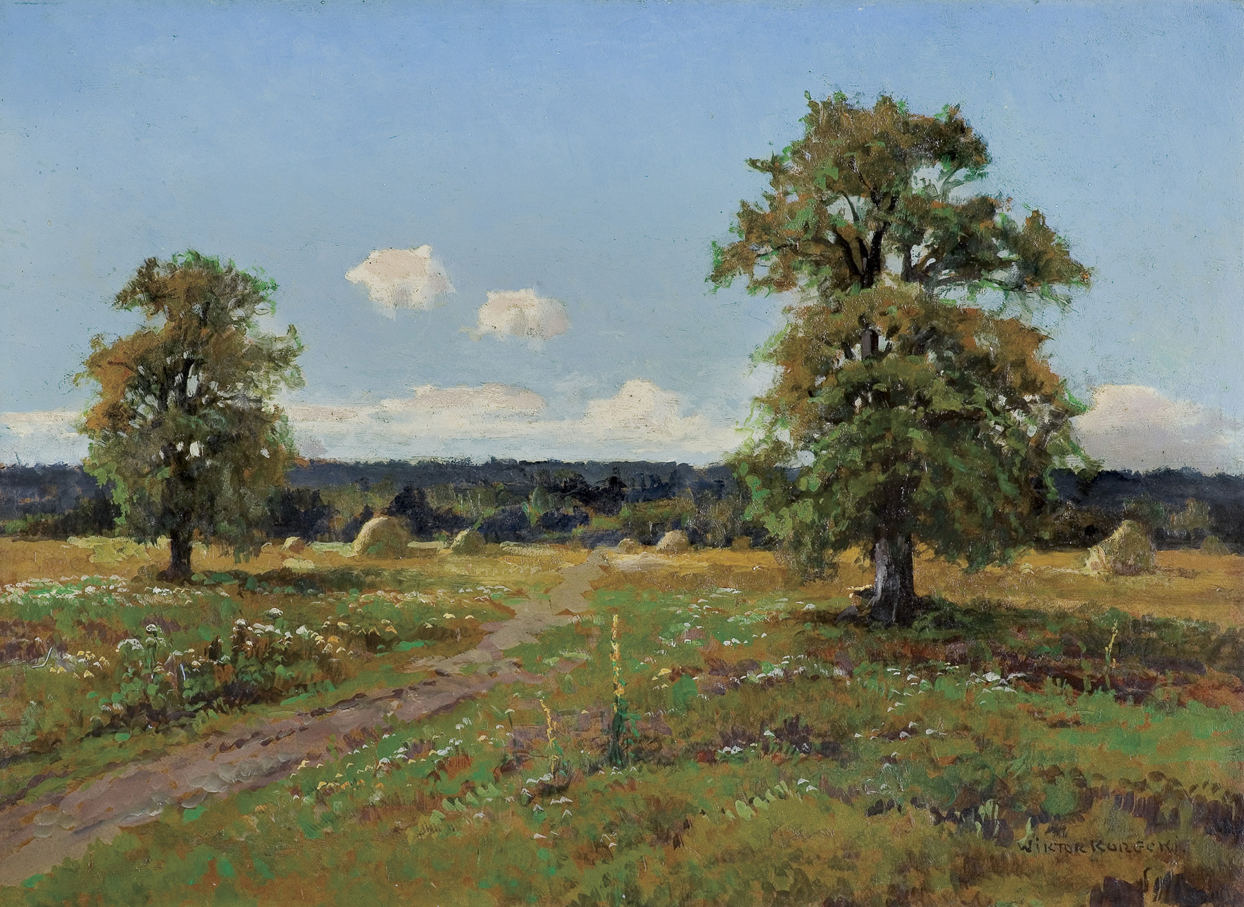 Wiktor Korecki (Kamieniec Podolski 1890 - Komorów k. Warszawy 1980) - malarz pejzażysta - gimnazjum ukończył w Kijowie, tam też studiował w Szkole Rysunkowej Aleksandra Muraszki. Po studiach wrócił do Kamieńca Podolskiego, skąd w roku 1921 wyjechał do Warszawy. Tu miał pracownię na rogu ulic Tamki i Cichej. Niestety zgromadzone tam obrazy spłonęły w czasie powstania 1944 roku. Po powstaniu artysta przebywał w obozie w Pruszkowie skąd trafił do obozu pracy w Lipsku. Do kraju powrócił w roku 1946 i zamieszkał w Komorowie pod Warszawą, a później w Milanówku. Jego nastrojowe krajobrazy emanujące spokojem i pogodą cieszyły się zawsze dużą popularnością. Korecki najczęściej malował pejzaże zimowe z motywem leśnej drogi i strumienia wijącego się wśród śniegów, a obok nich także wiosenne, letnie czy jesienne widoki z Mazowsza.