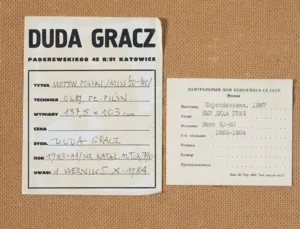 Jerzy Duda Gracz (Częstochowa 1941 - Łagów 2004) - malarz, rysownik, scenograf, pedagog. Dyplom w Akademii Sztuk Pięknych w Krakowie na Wydziale Grafiki w Katowicach otrzymał w 1968. W latach 1976-82 był wykładowcą tej uczelni, następnie profesorem Uniwersytetu Śląskiego w Katowicach. Wykładał również w Europejskiej Akademii Sztuk w Warszawie (1992-2001).