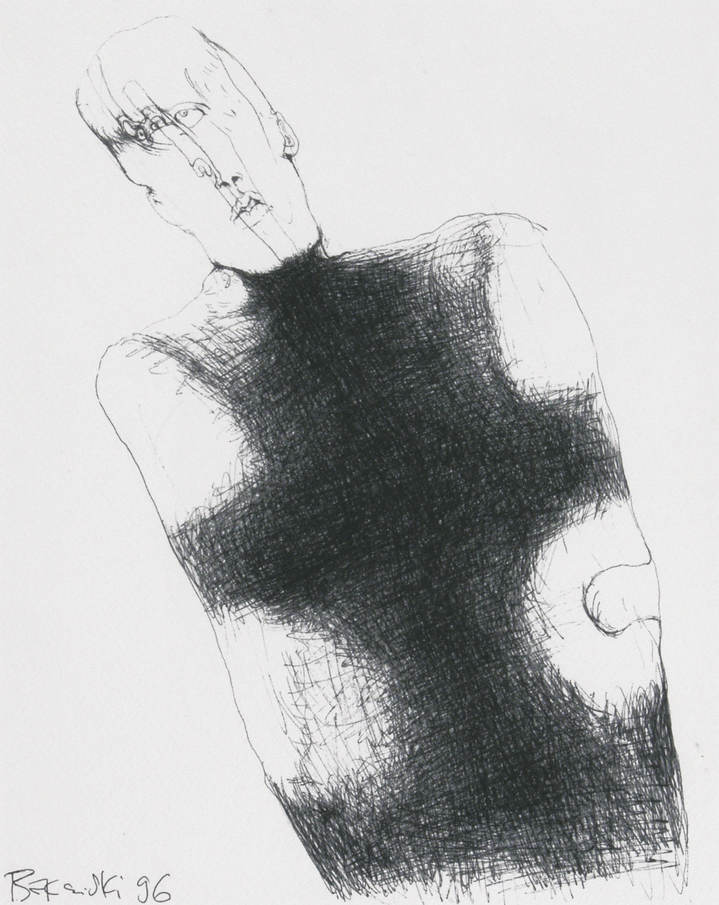 Zdzisław Beksiński (Sanok 24 II 1929 - Warszawa 21 II 2005) studiował w latach 1947-1952 na Wydziale Architektury Politechniki Krakowskiej. Był artystą samoukiem, który osiągnął niekwestionowaną pozycję w polskiej sztuce współczesnej, potwierdzoną obecnością jego prac na prestiżowych wystawach i w kolekcjach muzealnych. Początkowo zajmował się fotografią, którą interesował się od lat studenckich, po 1956 zyskując uznanie jako twórca fotogramów o estetyce opartej o efekty fakturowe. W latach 1958-1962 tworzył abstrakcyjne obrazy-reliefy o bogatej fakturze, głównie metalowe, będące odmianą malarstwa materii. Pod koniec tego okresu powstawały ażurowe formy o kształtach figur i pełnoplastyczne rzeźby w metalu. Kolejnym etapem jego twórczości były lata 1962-1974, kiedy poświęcał się głównie rysunkowi. W latach 60. rysował piórkiem i tuszem figuralne kompozycje odznaczające się karykaturalną deformacją postaci. Od końca lat 60. tworzył rysunki węglem i kredkami, będące monochromatyczną odmianą jego równoległej twórczości malarskiej. Od 1974 zajmował się niemal niepodzielnie malarstwem. Jego charakterystyczny styl bazował na perfekcji technicznej, której towarzyszyła niezwykłość wizji. Malował świat po katastrofie, naznaczony piętnem śmierci i rozpadu. Jego obrazy zaludniają postaci i stwory o ludzkich wprawdzie bądź zwierzęcych kształtach, lecz o cechach fantomów, automatów lub rozpadających się trucheł. Artysta nie nadawał swym obrazom i rysunkom tytułów (poza porządkującymi symbolami), akcentując w ten sposób swój brak zainteresowania dla literackiej strony przedstawień. Sam mówił, że malując całkowicie poddaje się wizji, „fotografuje“ ją. W ostatnich latach włączył do swego warsztatu artystycznego elektroniczne techniki generowania obrazu, które wykorzystywał do tworzenia komputerowych fotomontaży. Sztuka Beksińskiego, wielokrotnie wystawiana i omawiana, budzi skrajne emocje wśród znawców i publiczności.