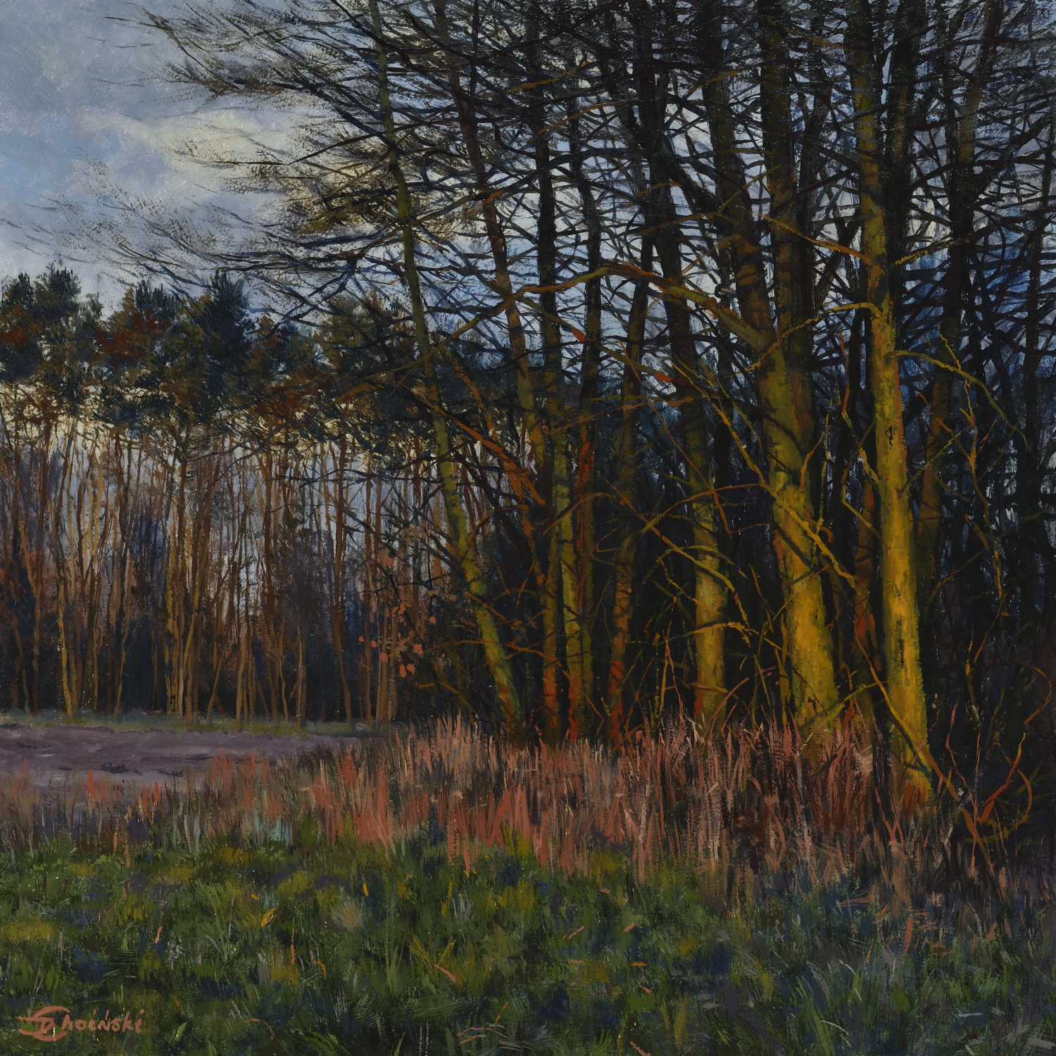 Malarstwem i rysunkiem zajmuje się od dzieciństwa. Tematyką jego obrazów są przede wszystkim polska przyroda i krajobrazy (głównie z Mazowsza), bo tu też mieszka i tu znajduje inspiracje dla swoich prac. Maluje na zagruntowanych płytach MDF oraz podobraziach lnianych i bawełnianych. Używa farb Winsor&Newton oraz Michael Harding. Obrazy po ukończeniu zazwyczaj pokrywa werniksem retuszerskim W&N.