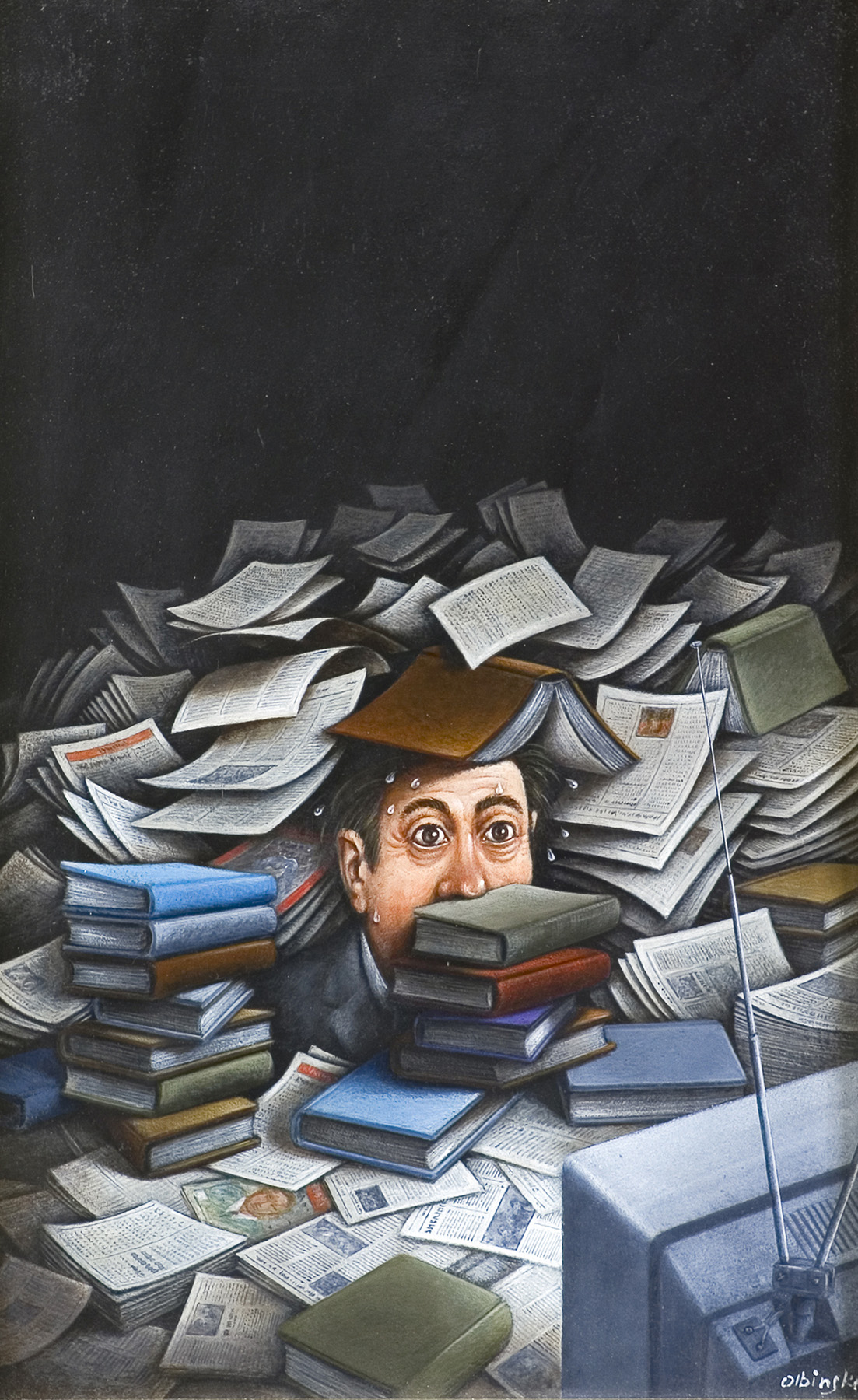 Rafał Olbiński (Kielce 1945, mieszka w Warszawie) - studiował na Wydziale Architektury Politechniki Warszawskiej, gdzie uzyskał dyplom w 1969. Od lat studenckich zajmował się grafiką użytkową i plakatem. Uczestniczył w wielu polskich i międzynarodowych wystawach związanych z grafiką i plakatem. Był autorem oprawy graficznej magazynu "Jazz Forum". W 1981 wyjechał z Polski i osiadł w Nowym Jorku gdzie kantynuował twórczość plakatową, a także zajął się malarstwem, rysunkiem prasowym i ilustracją. Debiutował w 1981 okładką do pisma "Psychology Today". Publikował w czasopismach takich jak "Newsweek", "Time", "Business Week", "The New York Times", "Atlantic Monthly", "Playboy", "New Yorker", "Omni". Od 1985 wykładał w School of Visual Arts w Nowym Jorku. Od wielu lat projektuje też plakaty dla New York City Opera. W 1994 otrzymał paryską nagrodę za najbardziej pamiętny plakat roku (International Oscar for the World's Most Memorable Poster "Prix Savignac 1994"), w 1995 wygrał konkurs na plakat "Nowy Jork – stolica świata". Jest reprezentowany w zbiorach takich, jak Museum of Modern Art w Nowym Jorku, Library of Congress Print Collection w Waszyngtonie, Muzeum Plakatu w Wilanowie oraz w wielu innych publicznych i prywatnych kolekcjach na całym świecie. Od lat 90. często bywa i wystawia w Polsce, obecnie mieszka w Warszwie. Jego prace odznaczają się specyficznym typem obrazowania, który zaskarbił mu opinię surrealisty. Dzięki zaskakującym zestawieniom elementów obrazu, łączeniu różnych planów i niezwykłemu skalowaniu, a także zawsze obecnej w pracach Olbińskiego narracji, jego dzieła cieszą się niesłabnącym zainteresowaniem i popularnością.