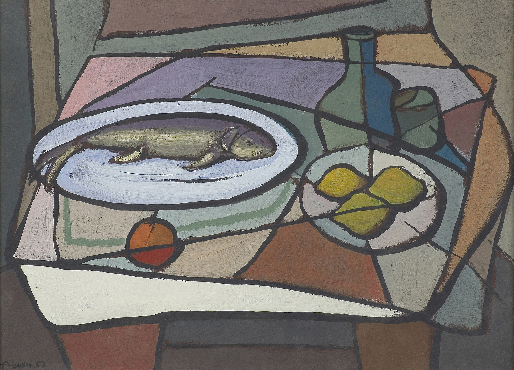 Fryderyk Antoni Hayder (Przemyśl 25 IV 1905 - Gliwice 1994) malarz, grafik; w latach 1925-1933 studiował w ASP w Krakowie - malarstwo w pracowni Józefa Mehoffera, rzeźbę u Xawerego Dunikowskiego, otrzymując dyplom z wyróżnieniem. Od 1935 zamieszkał w Warszawie. Obok malarstwa zajmował się grafiką użytkową i aranżacją wnętrz. Przed wojną brał udział w wystawach m.in. w Zachęcie (1937) i w TPSP w Krakowie (1938). Podczas Powstania Warszawskiego większa część prac uległa zniszczeniu. W 1945 artysta zamieszkał w Gliwicach, uratowane rysunki i szkicowniki z lat 1926-1944, przekazał do Muzeum w Gliwicach, gdzie po wojnie pracował jako kustosz. Współtworzył Gliwicki Oddział ZPAP, uczestniczył w wielu wystawach ogólnopolskich (Wystawa Plastyki Ziem Nadodrzańskich, W-wa 1959; Malarstwo w XV-lecie PRL, W-wa 1961). Miał szereg wystaw indywidualnych. m.in. 1957 CBWA Katowice, Szczecin; w 1984 z okazji 50-lecia pracy twórczej w Muzeum Okręgowym w Przemyślu; 1985 BWA Katowice, 1987 Zachęta Warszawa. Malował kompozycje figuralne, pejzaże, sceny rodzajowe i martwe natury. Po wojnie podejmował tematykę zaangażowana ideologicznie, od połowy lat 50. większą uwagę poświęcił stronie formalnej, malując w konwencji postkubistycznej. Obraz budował za pomocą linearnej siatki grubych konturów, kolor wyważony, rzadko o intensywnym natężeniu kładziony był płasko. Na początku lat 60. malował szereg abstrakcji o charakterze informelowskich, gdzie konstrukcja obrazu uległa zmiękczeniu, by w latach 70. powrócić do konturu wyznaczającego układ form i przestrzeń. Dążył do syntezy, malował dużymi płaszczyznami, upraszczał rysunek. Podejmował tematykę religijną, cykl „Droga Krzyżowa” znajduje się w Muzeum Narodowym Ziemi Przemyskiej w Przemyślu, jego prace są m.in. w zbiorach Muzeum Górnośląskiego w Bytomiu i w Muzeum w Gliwicach.