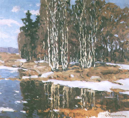 Stanisław Żukowski (Jędrychowice k. Grodna 1875 - Pruszków 1944) – malarz pejzażysta; w latach 1892-1901 studiował w Moskiewskiej Szkole Malarstwa, Rzeźby i Architektury, m.in u Siergieja Korowina, Abrama Archipowa i Isaaka Lewitana. Po studiach pozostał w Rosji. Od 1896 uczestniczył w wystawach Towarzystwa Pieriedwiżników; w roku 1907 otrzymał tytuł akademika. Od 1923 stale mieszkał w Warszawie, gdzie wielokrotnie wystawiał w Towarzystwie Zachęty Sztuk Pięknych. Był przede wszystkim znakomitym pejzażystą; malował także wnętrza i rzadziej portrety. Jego obrazy, zawsze wysoko cenione, niejednokrotnie były odznaczane medalami na wystawach - m.in. w roku 1912 na międzynarodowej wystawie w Monachium nagrodzono złotym medalem Jesienny wieczór. Podczas pobytu w Rosji, artysta najczęściej podpisywał swoje prace cyrylicą, później alfabetem łacińskim. Wiele jego obrazów znajduje się w polskich zbiorach muzealnych oraz w muzeach Moskwy, Petersburga i Mińska. Katalog znanych dzieł artysty zawiera bogato ilustrowana monografia, autorstwa M.U.Goriełowa [Stanisław Julianowicz Żukowskij, Moskwa 1982].