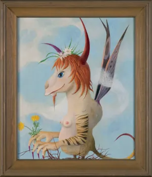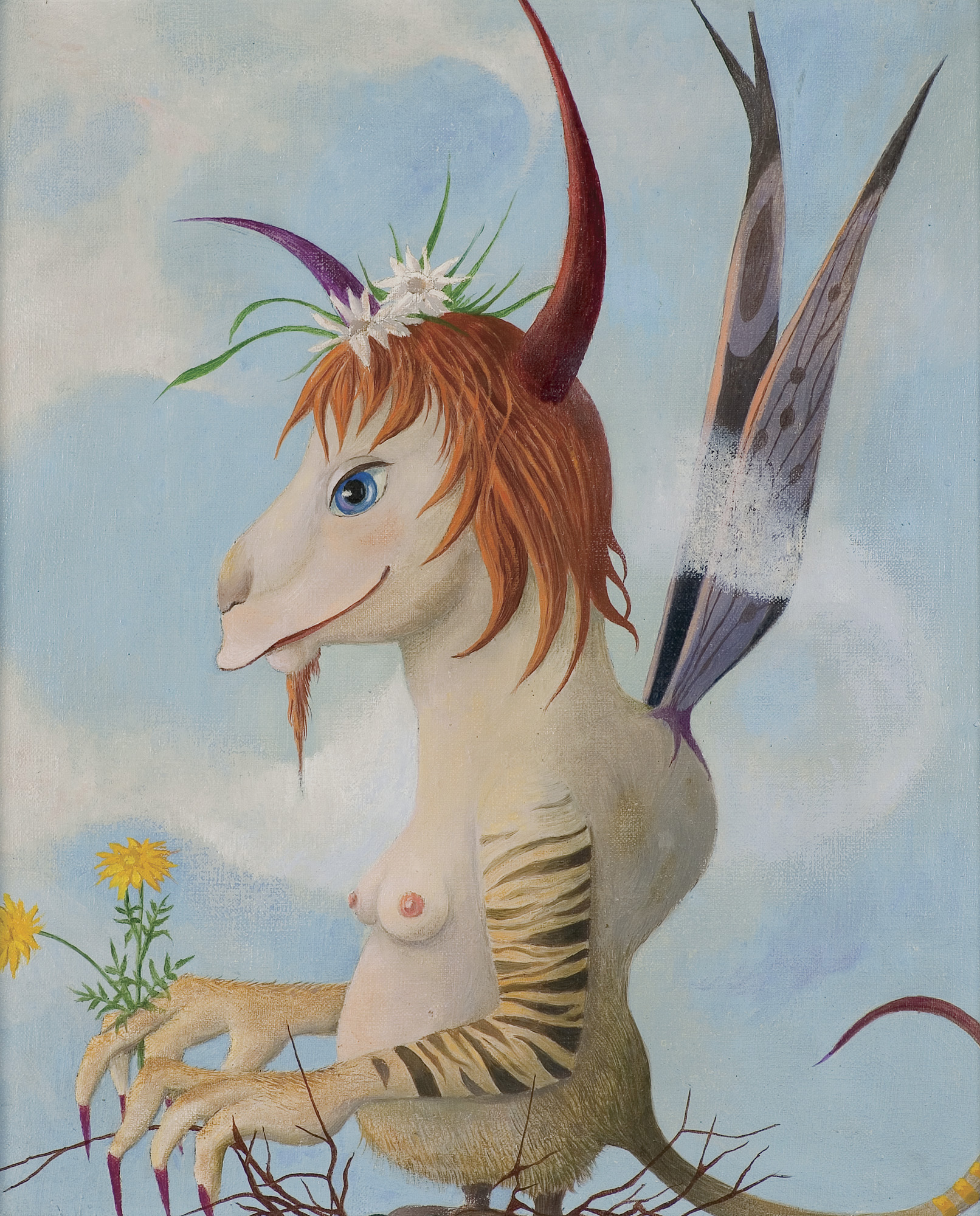 Kazimierz Mikulski (Kraków 1918 - Kraków 1998) rozpoczął studia malarskie przed II wojną światową w ASP w Krakowie, kontynuował je w latach 1939-1940 pod kierunkiem prof. Fryderyka Pautscha w Kunstgewerbeschule, powstałej za okupacji w miejsce Akademii. Po wojnie ukończył dwuletnie studia aktorskie w Studio Dramatycznym przy Starym Teatrze w Krakowie i do 1948 pracował jako aktor. Jednocześnie w 1945 ukończył Warsztat Filmowy Młodych. W latach 1948-1979 był kierownikiem plastycznym i scenografem Teatru Groteska w Krakowie, dla którego projektował lalki, kostiumy, dekoracje itp. Równolegle cały czas zajmował się malarstwem i działalnością w kręgu Tadeusza Kantora, zrazu jako członek Gru-py Młodych Plastyków, a od 1957 w Grupie Krakowskiej, której był współzałożycielem i prezesem w latach 1965-1967. Był też członkiem zespołu teatru Cricot 2, grał m.in. w spektaklach Kurka wodna, Nadobnisie i koczkodany, Umarła klasa oraz we własnej sztuce Cyrk. W swych obrazach z drugiej poł. lat 40. artysta przedstawiał lekkie, linearne formy unoszące się w pustych przestrzeniach. Było to malarstwo zarazem surrealistyczne i abstrakcyjne. Lecz już ok. 1950 zaczął malować w charaktery-styczny dlań sposób - odrzucając abstrakcję, prezentował niezliczone warianty i układy kilku ulubionych motywów (głowa lub postać kobiety-lalki, koty, motyle).