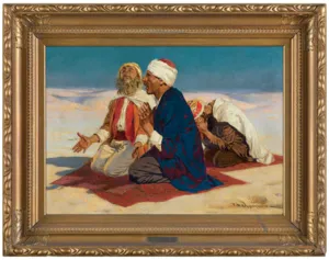 Feliks Michał Wygrzywalski (Przemyśl 1875 - okolice Rzeszowa 1944) w latach 1893-98 studiował w ASP w Monachium pod kierunkiem J.C.Hertericha i K.Marra. Studia uzupełniał w Académie Julian w Paryżu. Już w czasie studiów wyjeżdżał do Włoch, a po 1900 przez kilka lat mieszkał w Rzymie. W 1906 podróżował do Egiptu. W 1908 na stałe osiadł we Lwowie. W latach 1909-14 pracował w tamtejszym teatrze jako inspektor sceny. Jeszcze kilkakrotnie podróżował do Włoch. Był malarzem realistą; we wcześniejszym okresie twórczości skłaniał się ku naturalizmowi i silnej ekspresji. Dużą wagę przywiązywał do efektów świetlnych, stosował bogatą, żywą gamę barwną. We wczesnych obrazach często przedstawiał ludzką pracę (Burłacy) lub dramatyczne wydarzenia i napięcia społeczne (Strajk, Chleba nam głodnym). Malował też portrety, akty, pejzaże nadmorskie, krajobrazy z Włoch i Ukrainy. Po podróży do Egiptu w jego malarstwie powtarzały się motywy i tematy orientalne (Modlitwa Arabów, Sprzedawcy dywanów). Zajmował się dekoracyjnym malarstwem ściennym, m.in. w 1908 zaprojektował, a później wykonał alegoryczne malowidła do gmachu Izby Handlowo-Przemysłowej we Lwowie. Zajmował się grafiką, ilustrował książki i czasopisma, projektował witraże, kostiumy i dekoracje teatralne (m.in. do Peer Gynta, Irydiona, Nocy listopadowej).