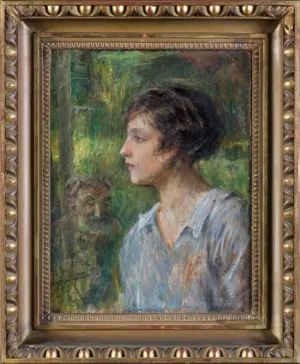 Teodor Axentowicz (Braszów w Siedmiogrodzie 1859 - Kraków 1938) – malarz, pastelista, litograf – był jednym z najbardziej znanych i cenionych malarzy polskich. Kształcił się w Akademii Sztuk Pięknych w Monachium pod kierunkiem Gabriela Hackla, Aleksandra Wagnera, Gyuli Benczúra. Studia uzupełniał w Paryżu, gdzie następnie przebywał przez lat kilkanaście. Brał udział w paryskich Salonach; w 1890 otrzymał członkostwo Société Nationale des Beaux-Arts. W tym czasie wielokrotnie wyjeżdżał również do Londynu. W 1895 powrócił do kraju i zamieszkał na stałe w Krakowie, powołany na profesora tamtejszej Szkoły Sztuk Pięknych (od 1900 Akademii). W uczelni tej nauczał nieprzerwanie do 1934, dwukrotnie pełniąc funkcję rektora (lata 1910-11 oraz 1927-28). Był jednym z członków-założycieli Towarzystwa Artystów Polskich „Sztuka”, członkiem wiedeńskiej „Secesji” i współpracownikiem jej pisma „Ver Sacrum”. Powodzenie przyniosły mu zwłaszcza idealizowane wizerunki wytwornych dam oraz wdzięczne portrety dziecięce. Malował też obrazy o tematyce rodzajowej; był jednym z pierwszych malarzy Huculszczyzny i Hucułów. Tworzył obrazy historyczne i kompozycje symboliczne związane z upływem czasu, przemijaniem, starością. We wczesnym, monachijskim okresie były to obrazy utrzymane w duchu akademickiego realizmu; na późniejszą twórczość artysty wywarło wpływ angielskie malarstwo XVIII w. oraz dzieła malarzy współczesnych - Boldoniego, Whistlera, Sargenta. Jego obrazy cechuje dekoracyjność, elegancja, świeżość subtelnej gamy kolorów i delikatna secesyjna stylizacja. Początkowo malował olejno i akwarelą, a po 1890 przede wszystkim mistrzowsko opanowaną techniką pastelu. Zajmował się ilustratorstwem i litografią, projektował plakaty wystaw „Sztuki”.