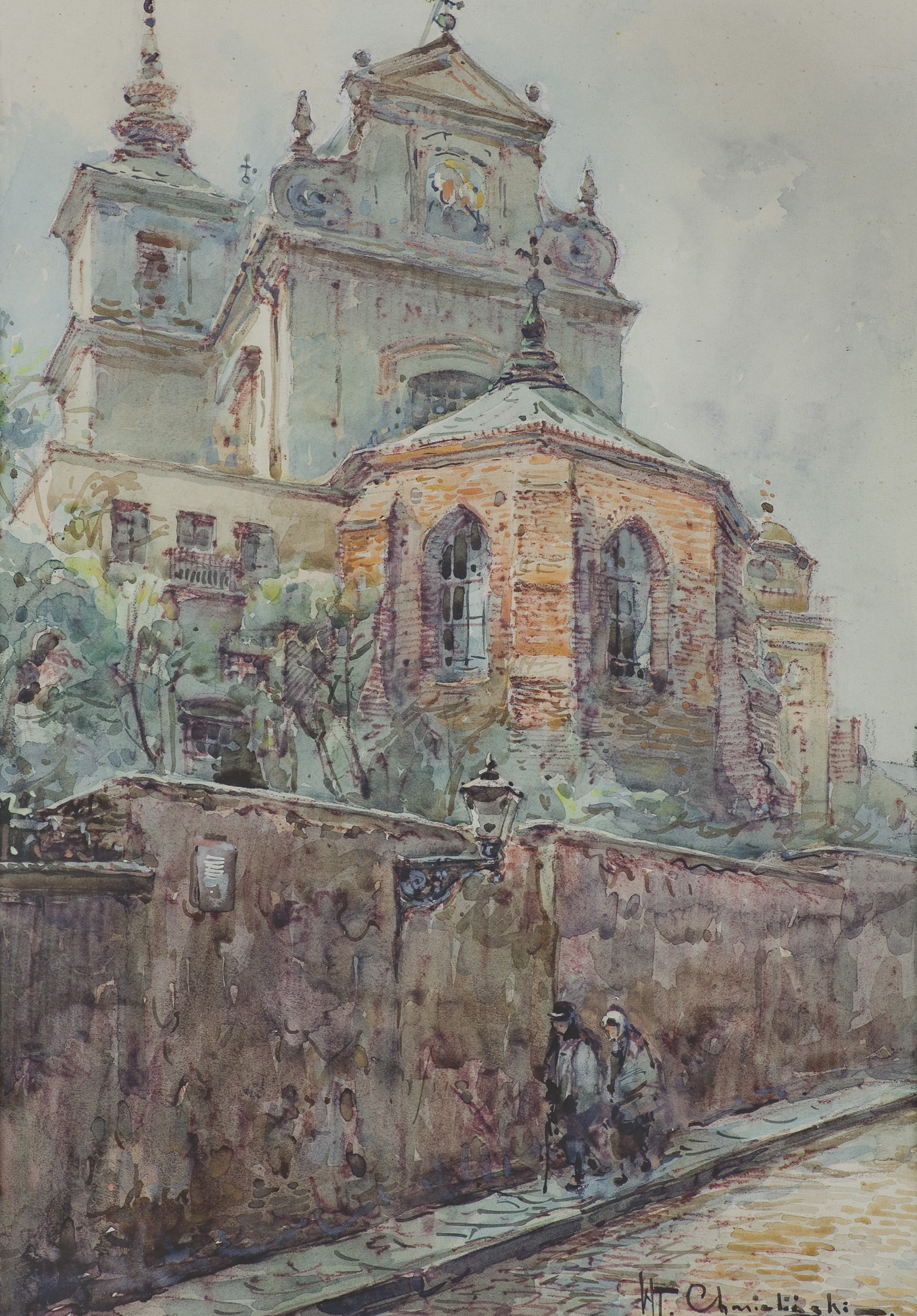 Władysław Chmieliński (Warszawa 1911 - Warszawa 1979) był malarzem związanym z Warszawą, gdzie stale mieszkał i pracował. W latach 1926-1931 studiował w warszawskiej Miejskiej Szkole Sztuk Zdobniczych i Malarstwa (dawna Klasa Rysunkowa). Wiodącym tematem jego obrazów były widoki miejskie, malowane olejno i akwarelą. W latach 1935-1938 stworzył cykl akwarel przedstawiających obiekty polskiej architektury; wśród nich, widoki Sandomierza, Krakowa, Kazimierza nad Wisłą, a także wnętrza zabytkowych kościołów czy pałaców, m.in. Zamku Królewskiego w Warszawie i Pałacu w Wilanowie. Malował także pejzaże i wiejskie sceny rodzajowe – kuligi, sanny, zaprzęgi, wesela, konie na tle krajobrazu. W latach 1967-1969 wyjeżdżał na dłuższe pobyty do Danii. W latach 1936-1939 artysta używał także pseudonimu „Władysław Stachowicz”.