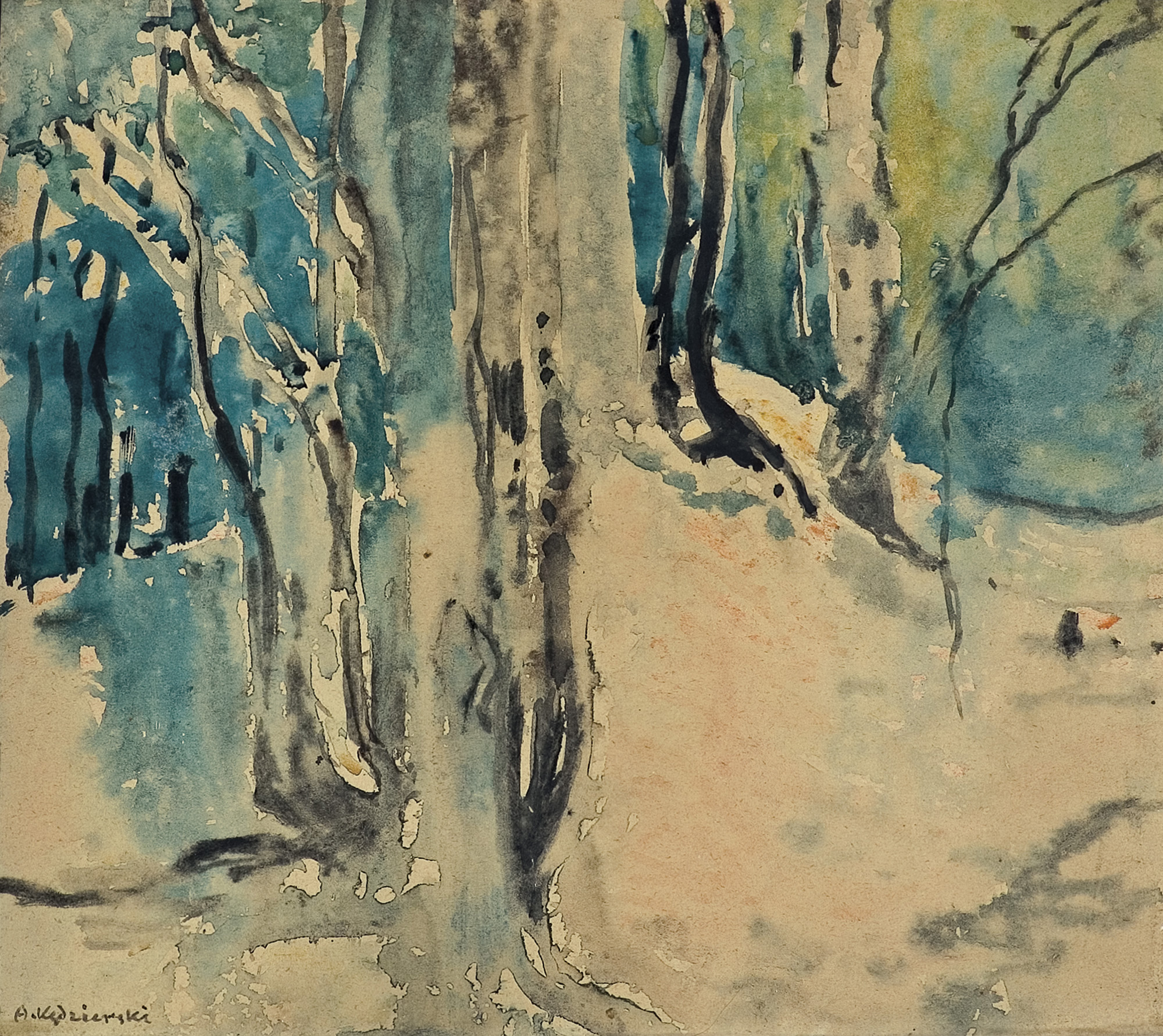 Apoloniusz Kędzierski (Suchedniów 1861 - Warszawa 1939)- malarz, akwarelista, rysownik, ilustrator i dekorator - był jednym z najpopularniejszych artystów warszawskich. Uczeń Józefa Brandta w Orońsku, Wojciecha Gersona i Aleksandra Kamińskiego w warszawskiej Klasie Rysunkowej, w latach 1886-1889 kształcił się jeszcze w Akademii Sztuk Pięknych w Monachium u Nikolausa Gysisa. Po studiach stale zamieszkał w Warszawie, skąd często wyjeżdżał na plenery malarskie. W 1902 podróżował do Belgii, Francji, Włoch, Wiednia i Budapesztu. Był członkiem Tow. Artystów Polskich „Sztuka“. Malował pejzaże i obrazy rodzajowe, martwe natury i „główki“ dziewczęce. Jego malarstwo podlegało przemianom stylistycznym - od realizmu po secesję. Z upodobaniem zajmował się ilustratorstwem, wykonując m.in. ilustracje do Chłopów Reymonta (wyd. Geberthnera i Wolfa w 1928). Współpracował także z wieloma czasopismami warszawskimi. Projektował meble i ceramikę, wykonywał polichromie kościelne. Duży zespół dzieł artysty spłonął w jego pracowni w pierwszych dniach powstania warszawskiego.