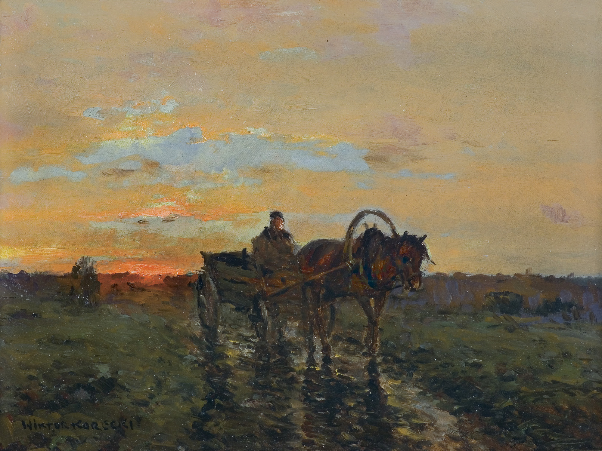 Wiktor Korecki (Kamieniec Podolski 1890 - Komorów k. Warszawy 1980) - malarz pejzażysta - gimnazjum ukończył w Kijowie, tam też studiował w Szkole Rysunkowej Aleksandra Muraszki. Po studiach wrócił do Kamieńca Podolskiego, skąd w roku 1921 wyjechał do Warszawy. Tu miał pracownię na rogu ulic Tamki i Cichej. Niestety zgromadzone tam obrazy spłonęły w czasie powstania 1944 roku. Po powstaniu artysta przebywał w obozie w Pruszkowie skąd trafił do obozu pracy w Lipsku. Do kraju powrócił w roku 1946 i zamieszkał w Komorowie pod Warszawą, a później w Milanówku. Jego nastrojowe krajobrazy emanujące spokojem i pogodą cieszyły się zawsze dużą popularnością. Korecki najczęściej malował pejzaże zimowe z motywem leśnej drogi i strumienia wijącego się wśród śniegów, a obok nich także wiosenne, letnie czy jesienne widoki z Mazowsza.