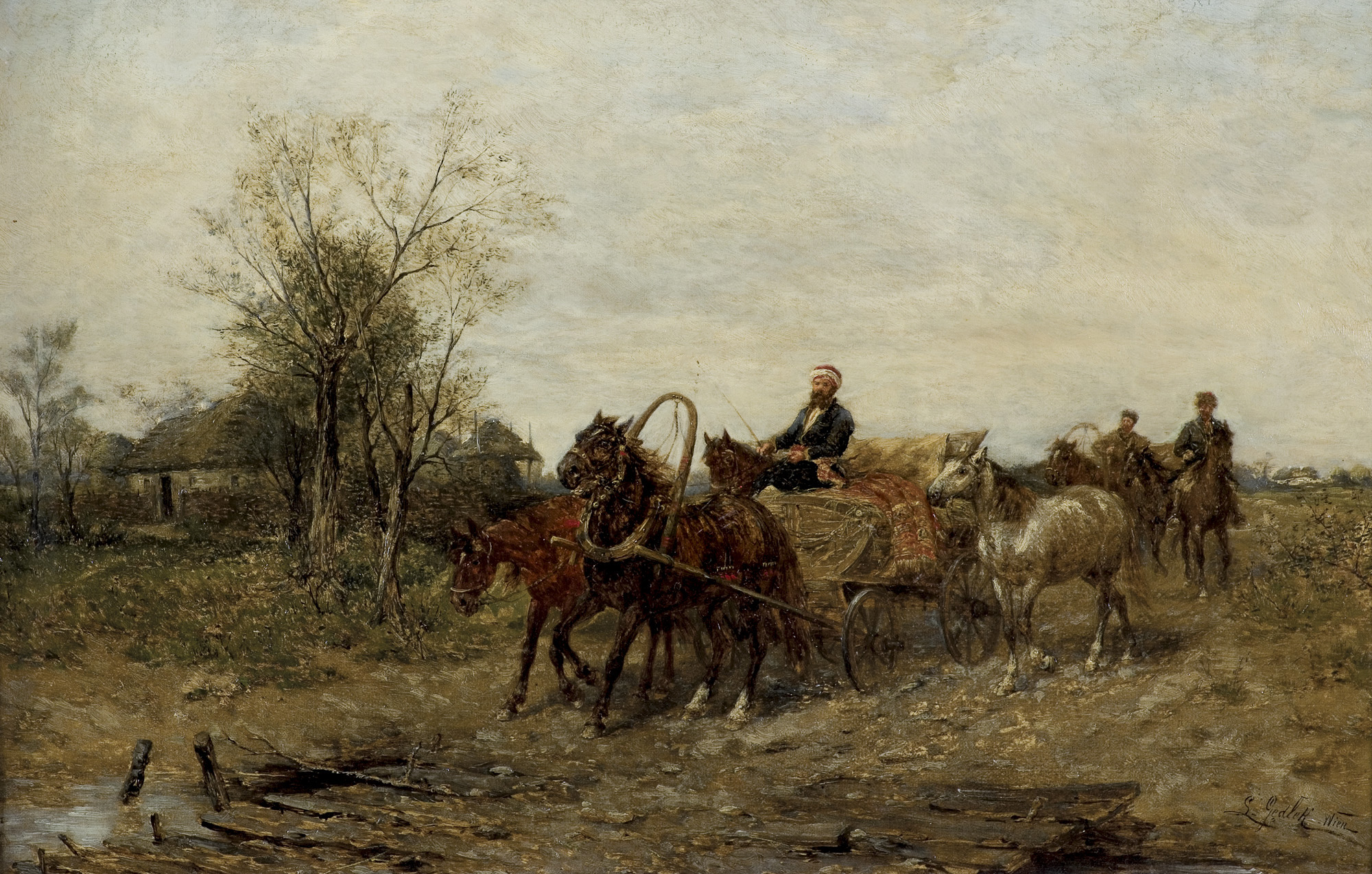 Ludwik Gędłek (Kraków 1847 - Wiedeń 1904) rozpoczął studia artystyczne w krakowskiej Szkole Sztuk Pięknych pod kierunkiem Władysława Łuszczkiewicza, a w latach 1872-1877 kontynuował je w Akademii wiedeńskiej u Eduarda Lichtenfelsa i Carla Wurzingera. Już w roku 1863 debiutował na wystawie w krakowskim TPSP, gdzie później wystawiał jeszcze kilkakrotnie. Stale mieszkał w Wiedniu, skąd wysyłał obrazy także na wystawy do TPSP we Lwowie, do Salonu Aleksandra Krywulta w Warszawie oraz do Drezna. Malował przede wszystkim sceny rodzajowe i batalistyczne z częstym motywem koni, a także krajobrazy, głównie z okolic Krakowa. Obrazy artysty znajdują się, m.in. w Muzeum Narodowym w Warszawie, Lwowskiej Galerii Obrazów i Polskim Muzeum w Chicago