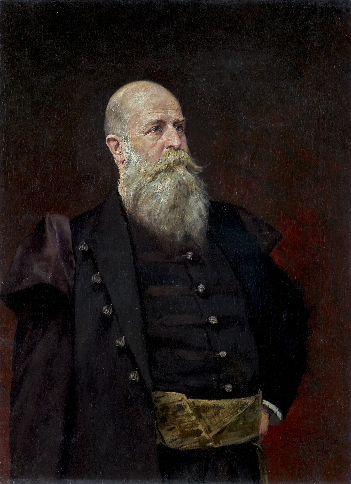 Jan Styka (Lwów 1858 - Rzym 1925) - popularny malarz scen historycznych i batalistycznych, autor obrazów alegorycznych i religijnych, portrecista, ojciec malarzy Tadeusza i Adama Styków. Studiował w Akademii Sztuk Pięknych w Wiedniu, następnie w Rzymie, a w latach 1882-1885 u Jana Matejki w Szkole Sztuk Pięknych w Krakowie. Po studiach spędził kilka lat w Paryżu, później mieszkał we Lwowie. W roku 1895 podróżował do Palestyny. Po 1900 stale mieszkał w Paryżu, skąd wyjeżdżał do Stanów Zjednoczonych, Włoch i Grecji. Uczestnik wielu wystaw, m.in. paryskich Salonów czy Wystawy Światowej w St. Louis (1904), cieszył się znaczną popularnością, a nawet sławą. Był członkiem Akademii Św. Łukasza w Rzymie. Był również pomysłodawcą i współtwórcą sławnych panoram - eksponowanej dziś stale we Wrocławiu Panoramy bitwy pod Racławicami (lata 1892-1894; wraz W. Kossakiem i innymi), Golgoty (1896; obecnie w Los Angeles), Panoramy Siedmiogrodzkiej (1897; pocięta na części, zachowały się tylko fragmenty), i Męczeństwa Chrześcijan w cyrku Nerona (1899; płótno zaginione podczas pierwszej wojny światowej). Zajmował się ilustratorstwem, m.in. przygotował ilustracje do luksusowego wydania Quo vadis? Sienkiewicza.
