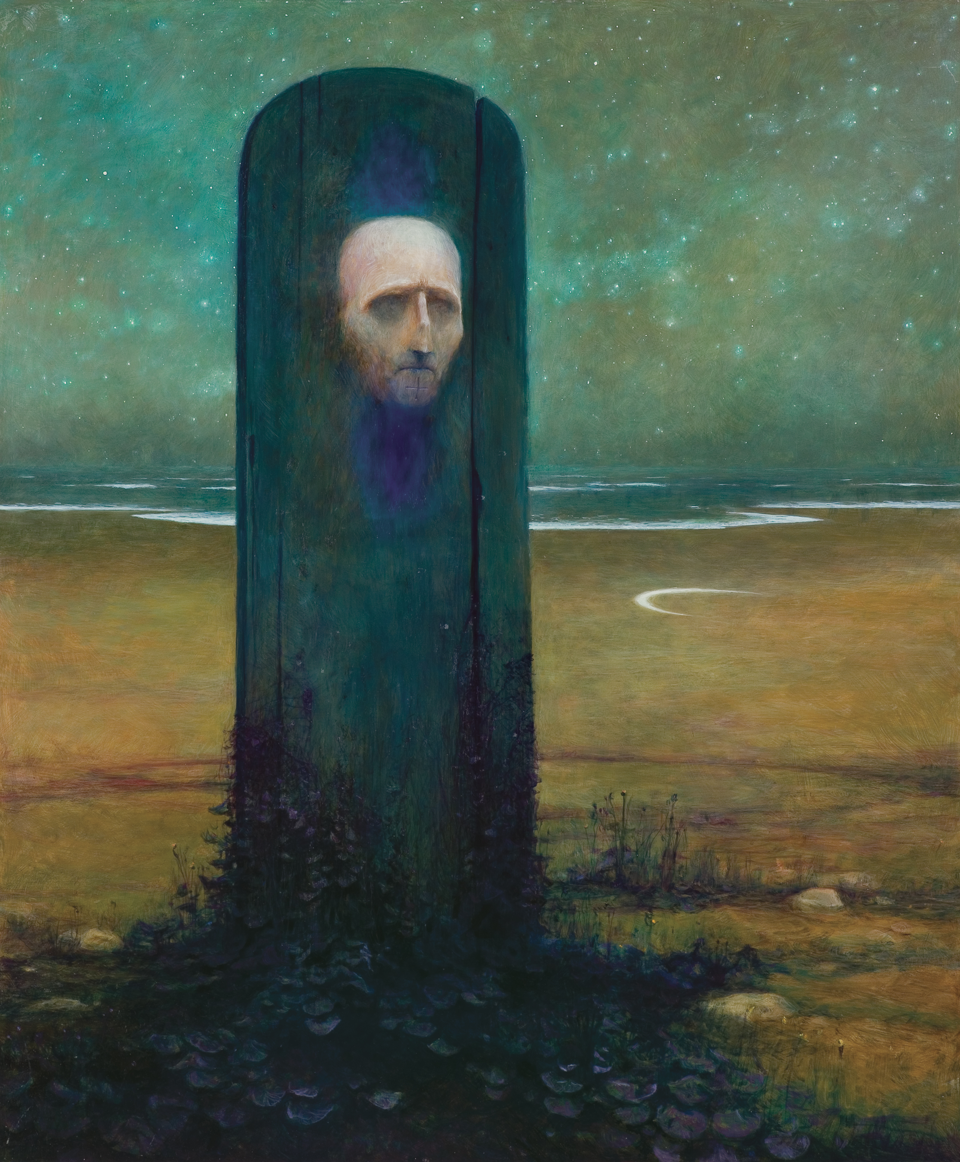 Zdzisław Beksiński (Sanok 24 II 1929 - Warszawa 21 II 2005) studiował w latach 1947-1952 na Wydziale Architektury Politechniki Krakowskiej. Był artystą samoukiem, który osiągnął niekwestionowaną pozycję w polskiej sztuce współczesnej, potwierdzoną obecnością jego prac na prestiżowych wystawach i w kolekcjach muzealnych. Początkowo zajmował się fotografią, którą interesował się od lat studenckich, po 1956 zyskując uznanie jako twórca fotogramów o estetyce opartej o efekty fakturowe. W latach 1958-1962 tworzył abstrakcyjne obrazy-reliefy o bogatej fakturze, głównie metalowe, będące odmianą malarstwa materii. Pod koniec tego okresu powstawały ażurowe formy o kształtach figur i pełnoplastyczne rzeźby w metalu. Kolejnym etapem jego twórczości były lata 1962-1974, kiedy poświęcał się głównie rysunkowi. W latach 60. rysował piórkiem i tuszem figuralne kompozycje odznaczające się karykaturalną deformacją postaci. Od końca lat 60. tworzył rysunki węglem i kredkami, będące monochromatyczną odmianą jego równoległej twórczości malarskiej. Od 1974 zajmował się niemal niepodzielnie malarstwem. Jego charakterystyczny styl bazował na perfekcji technicznej, której towarzyszyła niezwykłość wizji. Malował świat po katastrofie, naznaczony piętnem śmierci i rozpadu. Jego obrazy zaludniają postaci i stwory o ludzkich wprawdzie bądź zwierzęcych kształtach, lecz o cechach fantomów, automatów lub rozpadających się trucheł. Artysta nie nadawał swym obrazom i rysunkom tytułów (poza porządkującymi symbolami), akcentując w ten sposób swój brak zainteresowania dla literackiej strony przedstawień. Sam mówił, że malując całkowicie poddaje się wizji, „fotografuje“ ją. W ostatnich latach włączył do swego warsztatu artystycznego elektroniczne techniki generowania obrazu, które wykorzystywał do tworzenia komputerowych fotomontaży. Sztuka Beksińskiego, wielokrotnie wystawiana i omawiana, budzi skrajne emocje wśród znawców i publiczności.