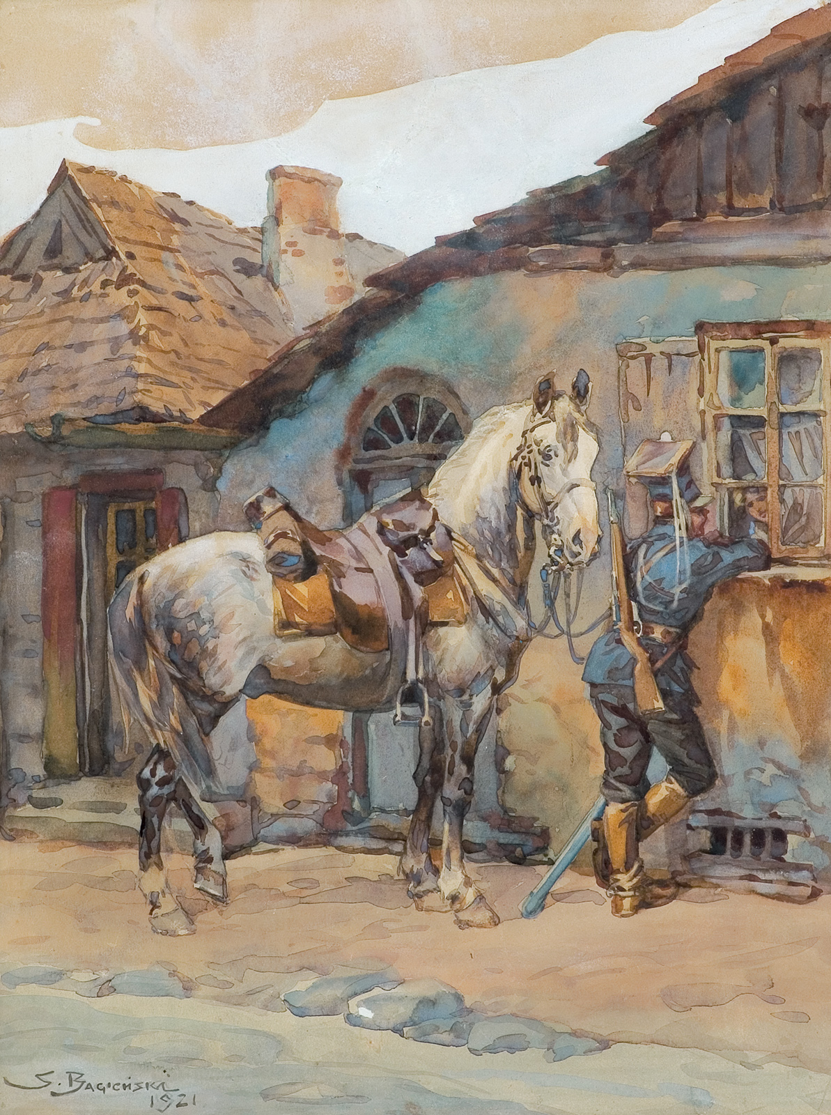 Stanisław Bagieński (Warszawa 1876 - Warszawa 1948) - popularny malarz-batalista, ilustrator - naukę malarstwa rozpoczął pod kierunkiem ojca Feliksa Bagieńskiego, a następnie uczył się w u Wojciecha Gersona w warszawskiej Klasie Rysunkowej. Studia kontynuował w Akademii w Monachium (1901-1903) oraz w Paryżu. Stale mieszkał w Warszawie, gdzie, począwszy od r. 1900, wielokrotnie wystawiał w Towarzystwie Zachęty Sztuk Pięknych. Malował sceny rodzajowe, pejzaże, a przede wszystkim obrazy batalistyczne gloryfikujące bohaterstwo polskiego żołnierza. Jako ilustrator współpracował z warszawskimi czasopisma-mi „Tygodnikiem Ilustrowanym”, „Światem”, „Biesiadą Literacką”. Ilustrował też książki, m.in. historyczne powieści Walerego Przyborowskiego.