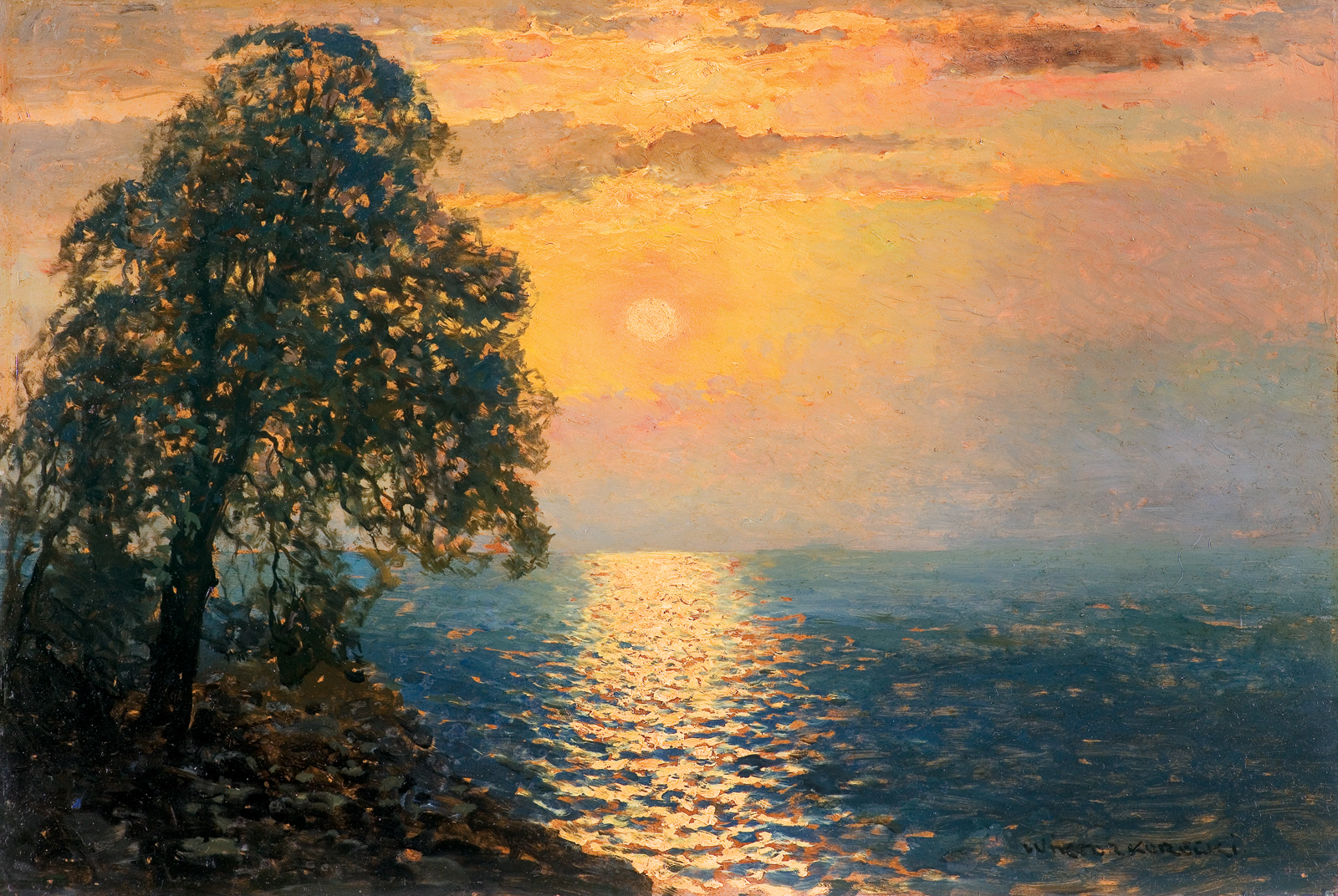 Wiktor Korecki (Kamieniec Podolski 1890 - Komorów k. Warszawy 1980) - malarz pejzażysta - gimnazjum ukończył w Kijowie, tam też studiował w Szkole Rysunkowej Aleksandra Muraszki. Po studiach wrócił do Kamieńca Podolskiego, skąd w roku 1921 wyjechał do Warszawy. Tu miał pracownię na rogu ulic Tamki i Cichej. Niestety zgromadzone tam obrazy spłonęły w czasie powstania 1944 roku. Po powstaniu artysta przebywał w obozie w Pruszkowie skąd trafił do obozu pracy w Lipsku. Do kraju powrócił w roku 1946 i zamieszkał w Komorowie pod Warszawą, a później w Milanówku. Jego nastrojowe krajobrazy emanujące spokojem i pogodą cieszyły się zawsze dużą popularnością. Korecki najczęściej malował pejzaże zimowe z motywem leśnej drogi i strumienia wijącego się wśród śniegów, a obok nich także wiosenne, letnie czy jesienne widoki z Mazowsza.