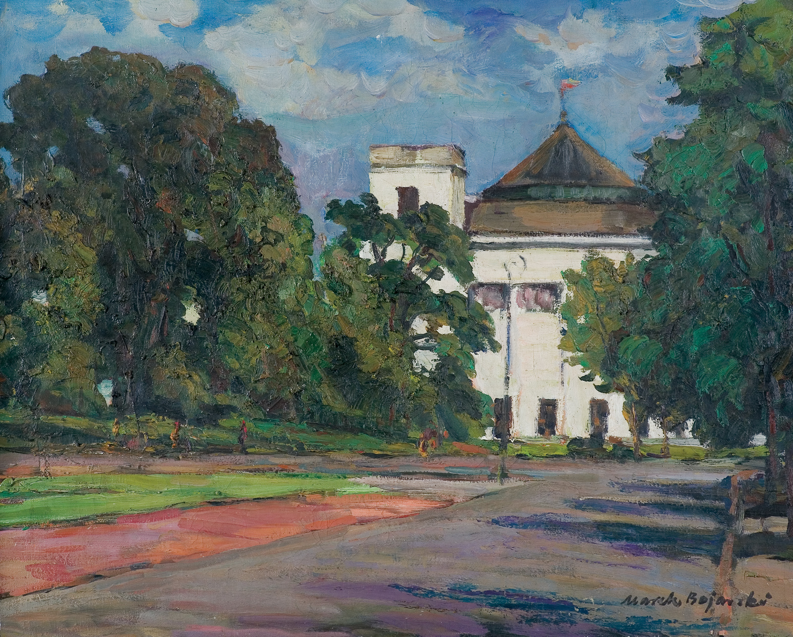 Marek Bojarski (Warszawa 1929 – Warszawa 2018) artysta od urodzenia związany z Warszawą, której dedykował część swoich dzieł. W 1955 roku ukończył warszawską ASP, gdzie uczęszczał do klas prof. Eugeniusza Eibischa i porf. Edwarda Kokoszko. Jego freski, polichromie i sgraffita, znalazły się na elewacjach, odbudowywanych po wojnie, kamienic warszawskiego Starego Miasta. Jego płótna zdobiły ściany m.in. hotelu Bristol, Filharmonii Warszawskiej oraz Banku Rzemiosł. Brał udział w wystawach w Warszawie (m.in. wraz z grupą artystów plastyków "Powiśle") i Radomiu. Wystawiał również w USA: w San Francisko w 1958 i rok później w Los Angeles.