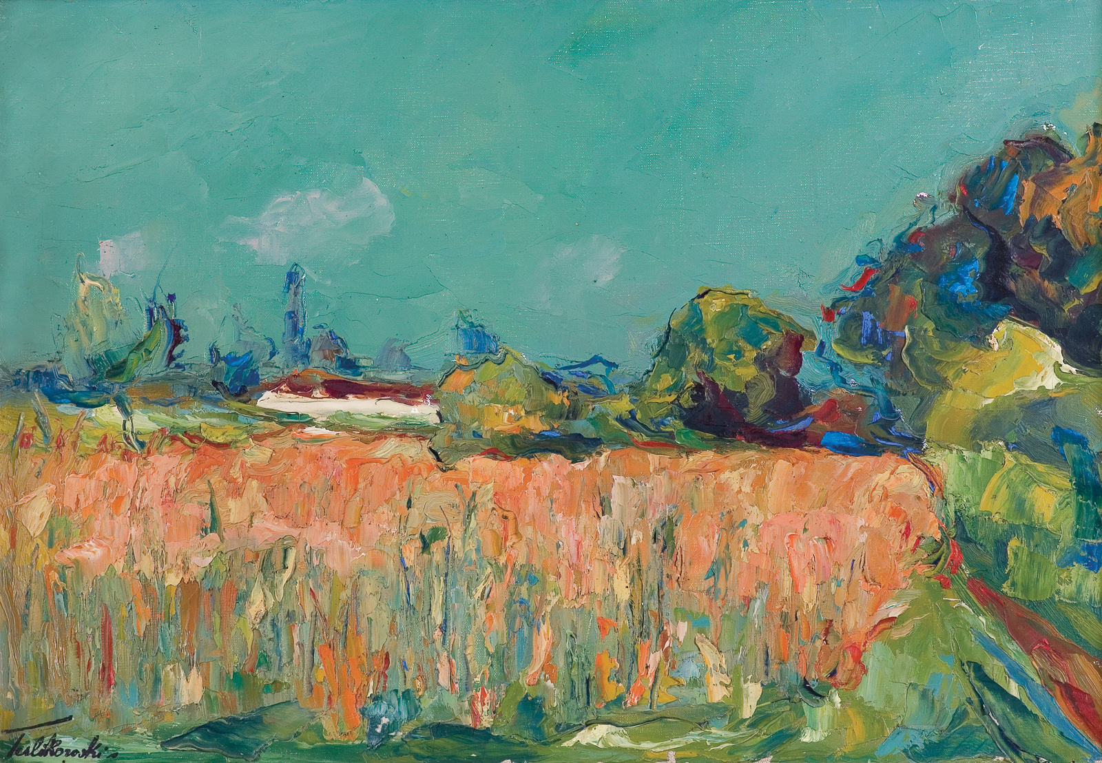 Włodzimierz Terlikowski (Poraj koło Łodzi 1873 - Paryż 1951) - malarz związany ze środowiskiem École de Paris - zasadniczo był samoukiem, chociaż przejściowo studiował w Monachium i w Paryżu. Dużo podróżował; poza Europą był w Indiach, północnej Afryce, Australii i Nowej Zelandii. Od roku 1911 stale mieszkał w Paryżu, gdzie miał kilka wystaw indywidualnych. Wystawiał też w Wenecji, w Brukseli i kilkakrotnie w Polsce. Jego obrazy wyróżniają się indywidualnym stylem malarskim - w pejzażach, martwych naturach i portretach stosował kolory żywe, nasycone i często ostro z sobą kontrastujące. Farbę nakładał szerokim pędzlem lub szpachlą, nadając obrazom bogatą i gęstą, mięsistą fakturę malarską.