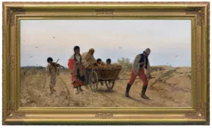 Ten duży, reprezentacyjny format sugeruje, że artysta malował Cyganów z przeznaczeniem na wystawę. Z dużym prawdopodobieństwem można go wiązać z płótnem Ein schlechter Weg, które w 1877 zostało...