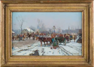 Antoni Piotrowski (Nieltulisko Duże koło Kunowa 1853 - Warszawa 1924) - malarz, rysownik, ilustrator - od roku 1869 uczył się w warszawskiej Klasie Rysunkowej u Rafała Hadziewicza, Aleksandra Kamińskiego i Wojciecha Gersona. W latach 1875-1877 studiował w Akademii Monachijskiej, m.in. u Wilhelma Lindenschmita Mł., a w latach 1877-1879 był uczniem Jana Matejki w krakowskiej Szkole Sztuk Pięknych. Po studiach wyjechał do Paryża, gdzie pozostał na dłużej. Brał udział w Salon Cimaise (1880) i w Salonach Paryskich (1880 i 1881). Od roku 1884 mieszkał w Krakowie, gdzie nauczał na Kursach im. A. Baranieckiego (jego uczennicą była, m.in. O. Boznańska). W latach 1885/1886 przebywał Bułgarii jako korespondent-ilustrator pism angielskich i francuskich, dokumentujący wojnę bułgarsko-serbską. Do Bułgarii jeździł jeszcze kilkakrotnie; namalował tam cykl obrazów dla Galerii Narodowej w Sofii i zrobił karierę jako portrecista arystokracji. W 1890 był na Krecie, w 1897 i 1903 wyjeżdżał na Bliski Wschód, skąd nadsyłał korespondencję i rysunki z wojny grecko-tureckiej. Od 1900 stale mieszkał w Warszawie, ale podróżował jeszcze do Monachium i Kijowa. Był przede wszystkim malarzem scen rodzajowych, często z życia mazowieckiej wsi. Malował także portrety, pejzaże, sceny historyczne i epizody z powstania styczniowego, w których nawiązywał do twórczości Maksymiliana Gierymskiego. W okresie około roku 1900 tworzył także obrazy fantastyczno-symboliczne (Nimfy i satyry, Idylla pasterska, Prawda i Obłuda). Brał udział w malowaniu panoramy Berezyna (z W. Kossakiem, J. Fałatem, K. Pułaskim, J. Stanisławskim i M. Wywiórskim) oraz panoramy Tatry (z S. Janowskim i innymi). W roku 1887 współpracował przy dekoracji malarskiej kościoła św. Katarzyny w Petersburgu, w 1888 malował plafony w pałacu Hertza w Łodzi. Ilustrował dzieła Henryka Sienkiewicza. Uczestniczył w wielu wystawach, tak w kraju, jak i za granicą. Był współzałożycielem Towarzystwa Artystów Polskich „Sztuka” i członkiem Towarzystwa Zachęty Sztuk Pięknych.
