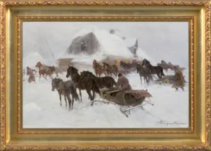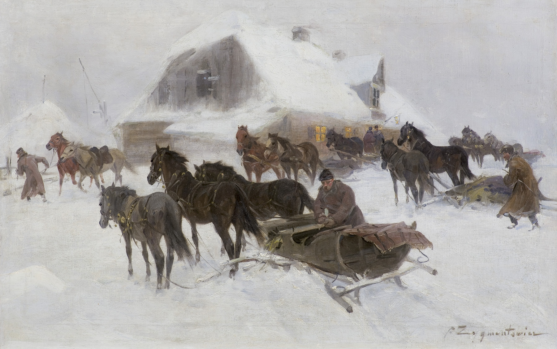 Czesław Wasilewski (ok. 1875 - Warszawa/ Łódź 1946?47) to popularny w okresie międzywojennym warszawski malarz, autor obrazów inspirowanych płótnami Kossaka, Brandta, Chełmońskiego, Wierusza-Kowalskiego czy Fałata. Był samoukiem; wprawdzie w 1911 zapisał się do warszawskiej Szkoły Sztuk Pięknych, ale o jego studiach nic bliższego nie wiadomo. Być może uczęszczał tam (1913-1917) do pracowni Wojciecha Kossaka, dla którego później, na początku lat dwudziestych, przygotowywał podmalówki do obrazów. Uczestniczył w wystawie w Lublinie (1922), wystawiał na Salonach warszawskiej Zachęty (1925,1926, 1927), w Katowicach (1926), Częstochowie (1927), Gdyni (1929), Kaliszu (1931), Poznaniu (1928, 1931). Malował przede wszystkim liczne zaprzęgi, sanny, wyjazdy na polowania, wypadki w podróży, ułanów na patrolu, łosie, sarny i dziki w lesie. Tworzył także nastrojowe pejzaże, wyraźnie inspirowane malarstwem J. Chełmońskiego Rzadziej malował także kwiaty i martwe natury. Utożsamiany z malarzem o nazwisku „Zygmuntowicz”, którego prace pojawiały się na rynku sztuki od trzydziestych lat XX wieku. Stawiany przed tym nazwiskiem inicjał I. lub F., sugerować może imię Ignacy lub Franciszek. Sylwetkę malarza bliżej omówił S. Bołdok w artykule Malarz o dwóch nazwiskach (Art and Business 1992, nr 7-8, s. 48-49).