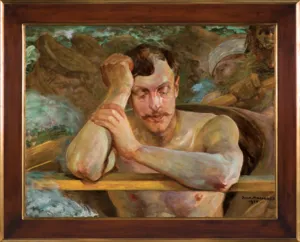 Jacek Malczewski (Radom 1854 - Kraków 1929) - wybitny przedstawiciel malarstwa polskiego modernizmu, studia artystyczne rozpoczął w krakowskiej Szkole Sztuk Pięknych, gdzie w latach 1872-1875 uczył się pod kierunkiem Feliksa Szynalewskiego, Władysława Łuszczkiewicza i Jana Matejki, do którego pracowni uczęszczał ponownie w latach 1877-1879. Następnie kształcił się w Paryskiej École des Beaux Arts u E. Lehmanna (1876-1877).