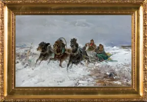 Czesław Wasilewski (ok. 1875 - Warszawa/ Łódź 1946?47) to popularny w okresie międzywojennym warszawski malarz, autor obrazów inspirowanych płótnami Kossaka, Brandta, Chełmońskiego, Wierusza-Kowalskiego czy Fałata. Był samoukiem; wprawdzie w 1911 zapisał się do warszawskiej Szkoły Sztuk Pięknych, ale o jego studiach nic bliższego nie wiadomo. Być może uczęszczał tam (1913-1917) do pracowni Wojciecha Kossaka, dla którego później, na początku lat dwudziestych, przygotowywał podmalówki do obrazów. Uczestniczył w wystawie w Lublinie (1922), wystawiał na Salonach warszawskiej Zachęty (1925,1926, 1927), w Katowicach (1926), Częstochowie (1927), Gdyni (1929), Kaliszu (1931), Poznaniu (1928, 1931). Malował przede wszystkim liczne zaprzęgi, sanny, wyjazdy na polowania, wypadki w podróży, ułanów na patrolu, łosie, sarny i dziki w lesie. Tworzył także nastrojowe pejzaże, wyraźnie inspirowane malarstwem J. Chełmońskiego Rzadziej malował także kwiaty i martwe natury. Utożsamiany z malarzem o nazwisku „Zygmuntowicz”, którego prace pojawiały się na rynku sztuki od trzydziestych lat XX wieku. Stawiany przed tym nazwiskiem inicjał I. lub F., sugerować może imię Ignacy lub Franciszek. Sylwetkę malarza bliżej omówił S. Bołdok w artykule Malarz o dwóch nazwiskach (Art and Business 1992, nr 7-8, s. 48-49).