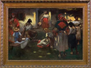 Włodzimierz Przerwa-Tetmajer (Harklowa koło Ludźmierza na Podhalu 1862 - Kraków 1923), przyrodni brat poety Kazimierza, naukę malarstwa rozpoczął wcześnie; już od 1875 uczęszczał na zajęcia do Szkoły Sztuk Pięknych w Krakowie, gdzie następnie (z przerwami) kształcił się do 1895 - początkowo u Franciszka Cynka, Leopolda Loefflera i Władysława Łuszczkiewicza, a po 1889 u Jana Matejki. Równolegle studiował filologię klasyczną na Uniwersytecie Jagiellońskim. W 1882 uczył się jeszcze w Akademii Wiedeńskiej, a w latach 1886-89 w Akademii Monachijskiej u Aleksandra Wagnera. Studia uzupełniał w paryskiej Académie Colarossi. Stypendium cesarskie umożliwiło mu wyjazd do Rzymu. Po powrocie mieszkał w Krakowie. W 1890 ożenił się z Anną Mikołajczykówną, córką gospodarza z podkrakowskiej wsi Bronowice, gdzie sam często przebywał, a w 1895 zamieszkał na stałe. W 1901 założył i następnie przez kilka lat prowadził szkołę malarstwa dla kobiet. Od 1899 był członkiem Towarzystwa Artystów Polskich „Sztuka”; w 1901 jednym z założycieli Towarzystwa „Polska Sztuka Stosowana”; w 1908 współzałożycielem grupy „Zero”. Był wybitnym przedstawicielem nurtu „ludowości”, malarzem obyczajów, pracy i krajobrazu podkrakowskiej wsi. We wcześniejszym okresie tworzył w duchu akademickiego, monachijskiego realizmu. Później wykształcił własny, oryginalny styl - kompozycja jego obrazów była swobodna, malował szerokimi pociągnięciami pędzla, używał jasnych, żywych barw. W latach 1892-1894 współpracował z Wojciechem Kossakiem i Janem Styką przy Panoramie Racławickiej. Projektował witraże, zajmował się ilustratorstwem i malarstwem ściennym, m.in. w 1902 wykonał polichromię kaplicy królowej Zofii w Katedrze na Wawelu. Artysta był pierwowzorem postaci Gospodarza w dramacie S. Wyspiańskiego Wesele.
