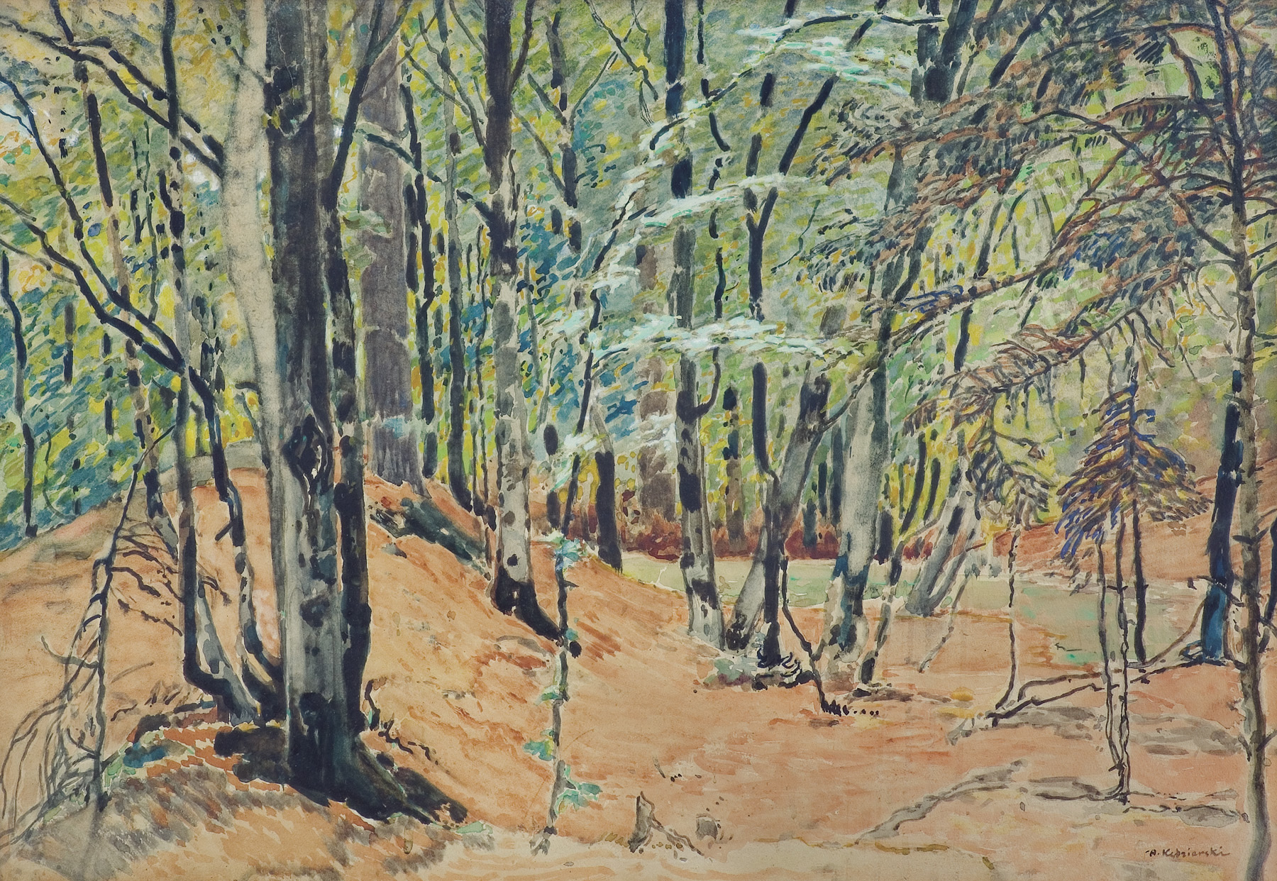 Apoloniusz Kędzierski (Suchedniów 1861 - Warszawa 1939)- malarz, akwarelista, rysownik, ilustrator i dekorator - był jednym z najpopularniejszych artystów warszawskich. Uczeń Józefa Brandta w Orońsku, Wojciecha Gersona i Aleksandra Kamińskiego w warszawskiej Klasie Rysunkowej, w latach 1886-1889 kształcił się jeszcze w Akademii Sztuk Pięknych w Monachium u Nikolausa Gysisa. Po studiach stale zamieszkał w Warszawie, skąd często wyjeżdżał na plenery malarskie. W 1902 podróżował do Belgii, Francji, Włoch, Wiednia i Budapesztu. Był członkiem Tow. Artystów Polskich „Sztuka“. Malował pejzaże i obrazy rodzajowe, martwe natury i „główki“ dziewczęce. Jego malarstwo podlegało przemianom stylistycznym - od realizmu po secesję. Z upodobaniem zajmował się ilustratorstwem, wykonując m.in. ilustracje do Chłopów Reymonta (wyd. Geberthnera i Wolfa w 1928). Współpracował także z wieloma czasopismami warszawskimi. Projektował meble i ceramikę, wykonywał polichromie kościelne. Duży zespół dzieł artysty spłonął w jego pracowni w pierwszych dniach powstania warszawskiego.