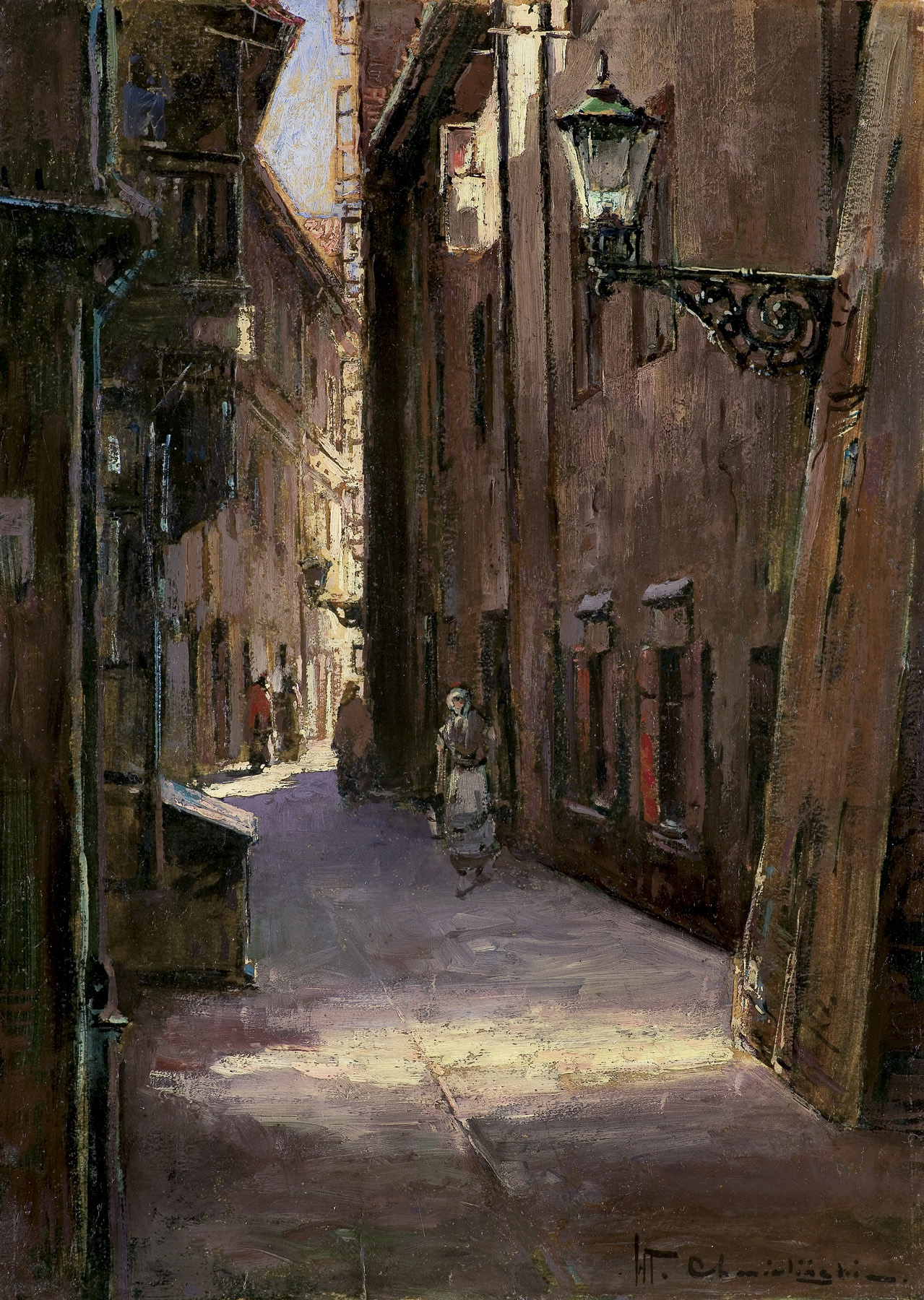 Władysław Chmieliński (Warszawa 1911 - Warszawa 1979) był malarzem związanym z Warszawą, gdzie stale mieszkał i pracował. W latach 1926-1931 studiował w warszawskiej Miejskiej Szkole Sztuk Zdobniczych i Malarstwa (dawna Klasa Rysunkowa). Wiodącym tematem jego obrazów były widoki miejskie, malowane olejno i akwarelą. W latach 1935-1938 stworzył cykl akwarel przedstawiających obiekty polskiej architektury; wśród nich, widoki Sandomierza, Krakowa, Kazimierza nad Wisłą, a także wnętrza zabytkowych kościołów czy pałaców, m.in. Zamku Królewskiego w Warszawie i Pałacu w Wilanowie. Malował także pejzaże i wiejskie sceny rodzajowe – kuligi, sanny, zaprzęgi, wesela, konie na tle krajobrazu. W latach 1967-1969 wyjeżdżał na dłuższe pobyty do Danii. W latach 1936-1939 artysta używał także pseudonimu „Władysław Stachowicz”.
