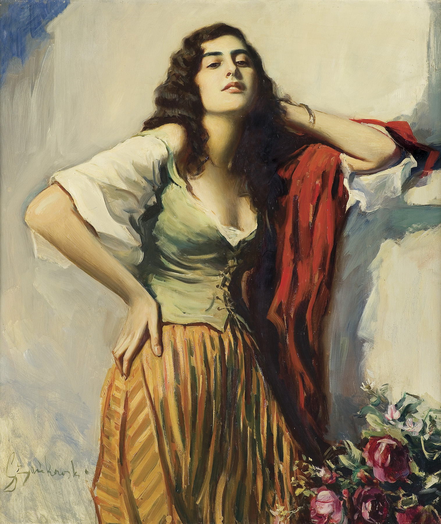 Bolesław Szańkowski (Warszawa 1873 - Fischbachau w Bawarii 1953), popularny malarz-portrecista, studiował w krakowskiej Szkole Sztuk Pięknych (1891-1894), w Akademii monachijskiej u Johanna C. Hertericha (1894) oraz w Académie Colarrosi i Académie Julian w Paryżu (1896-1898). W 1912 zamieszkał na stałe w Monachium, skąd wielokrotnie wyjeżdżał do Francji, Belgii, Anglii i Szkocji, Stanów Zjednoczonych. Ceniony portrecista, malował wiele reprezentacyjnych portretów osób z arystokracji oraz europejskich rodzin panujących. Portretował, m.in. Ignacego Paderewskiego, księżnę Daisy von Pless, Radziwiłłów, Potockich, rodzinę cesarską w Berlinie i królewską rodzinę w Rumunii. Chętnie malował idealizowane portrety pięknych i wytwornych dam oraz, bardziej kameralne, wdzięczne portrety dziecięce, wielokrotnie portretując także swoje córki - Adę i Helenę. Na paryskim Salonie w 1900 roku uzyskał mention honorable za obraz Portret oficera. Brał udział w wielu wystawach we Niemczech i Austrii; często nadsyłał obrazy na wystawy krajowe; w 1928 i 1939 miał duże wystawy indywidualne w warszawskiej Zachęcie.