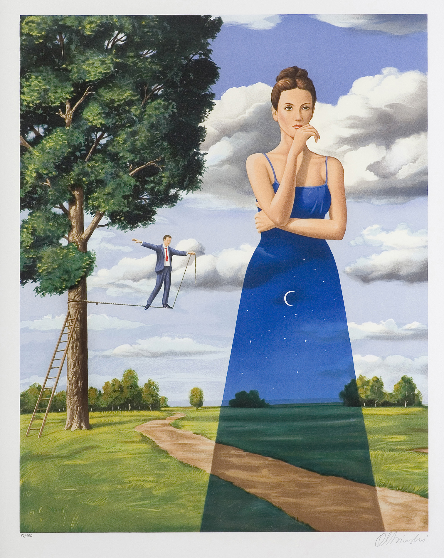 Rafał Olbiński (Kielce 1945, mieszka w Warszawie) - studiował na Wydziale Architektury Politechniki Warszawskiej, gdzie uzyskał dyplom w 1969. Od lat studenckich zajmował się grafiką użytkową i plakatem. Uczestniczył w wielu polskich i międzynarodowych wystawach związanych z grafiką i plakatem. Był autorem oprawy graficznej magazynu "Jazz Forum". W 1981 wyjechał z Polski i osiadł w Nowym Jorku gdzie kantynuował twórczość plakatową, a także zajął się malarstwem, rysunkiem prasowym i ilustracją. Debiutował w 1981 okładką do pisma "Psychology Today". Publikował w czasopismach takich jak "Newsweek", "Time", "Business Week", "The New York Times", "Atlantic Monthly", "Playboy", "New Yorker", "Omni". Od 1985 wykładał w School of Visual Arts w Nowym Jorku. Od wielu lat projektuje też plakaty dla New York City Opera. W 1994 otrzymał paryską nagrodę za najbardziej pamiętny plakat roku (International Oscar for the World's Most Memorable Poster "Prix Savignac 1994"), w 1995 wygrał konkurs na plakat "Nowy Jork – stolica świata". Jest reprezentowany w zbiorach takich, jak Museum of Modern Art w Nowym Jorku, Library of Congress Print Collection w Waszyngtonie, Muzeum Plakatu w Wilanowie oraz w wielu innych publicznych i prywatnych kolekcjach na całym świecie. Od lat 90. często bywa i wystawia w Polsce, obecnie mieszka w Warszwie. Jego prace odznaczają się specyficznym typem obrazowania, który zaskarbił mu opinię surrealisty. Dzięki zaskakującym zestawieniom elementów obrazu, łączeniu różnych planów i niezwykłemu skalowaniu, a także zawsze obecnej w pracach Olbińskiego narracji, jego dzieła cieszą się niesłabnącym zainteresowaniem i popularnością.