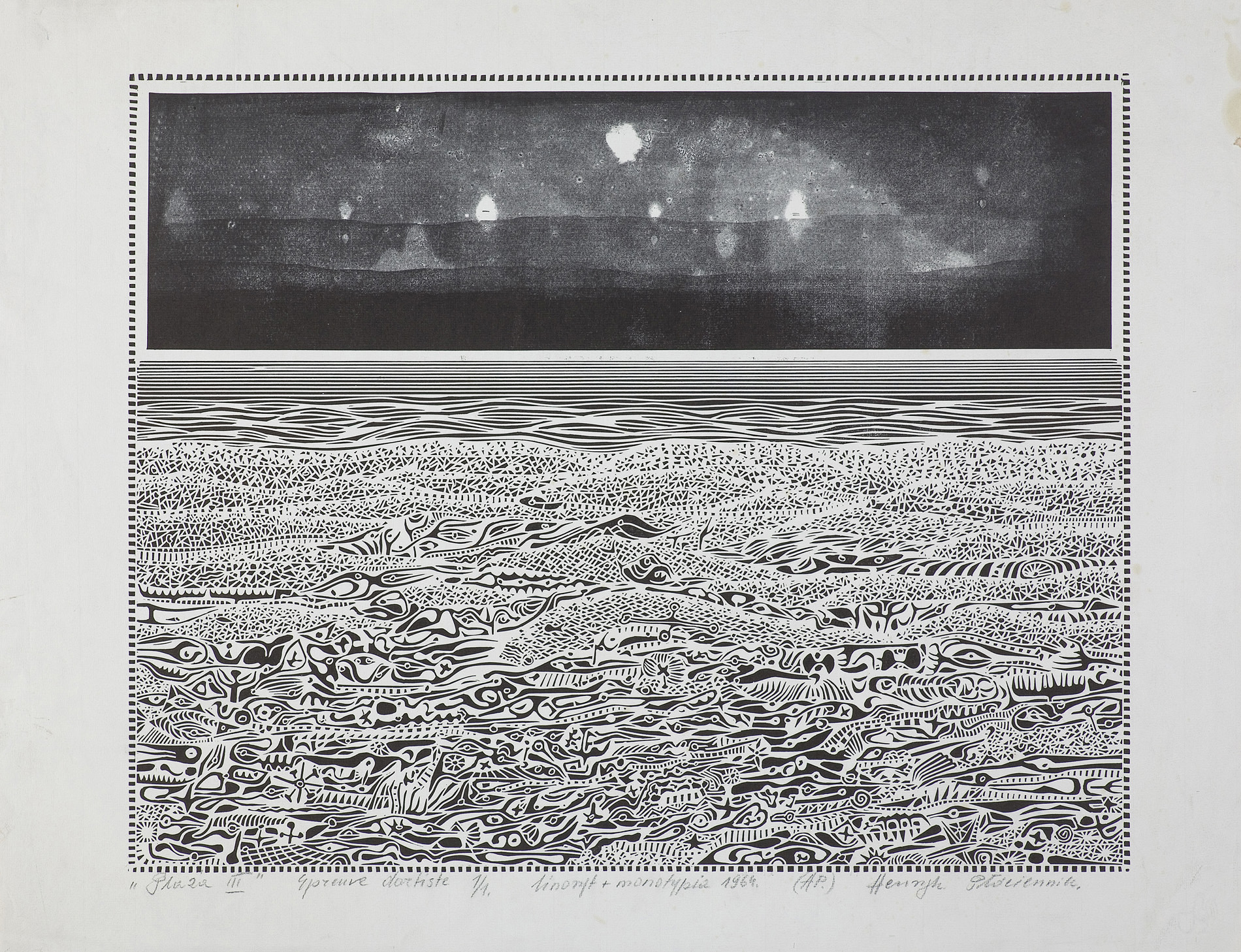 Henryk Płóciennik (Łódź 1933, Łódź 2020) malarz i grafik samouk. Zdobył wysoką pozycję jako grafik, pracujący głównie w technikach linorytu i autocynkografii. Jest autorem fantastycznych kompozycji o bogatym, ornamentalnym opracowaniu, obrazujących w zamyśle autora kosmiczne piękno i ład świata. Wielokrotnie wystawiał w kraju i za granicą, zdobywając liczne nagrody. Jego twórczość jest reprezentowana w czołowych zbiorach muzealnych, jak Muzeum Sztuki w Łodzi, liczne muzea narodowe i okręgowe, Biblioteka Jagiellońska i in. W 2004 w Łodzi powstała Fundacja „Arkadia” jego imienia, której celem jest zebranie, opracowanie i popularyzacja twórczości artysty. Artysta był również miłośnikiem i kolekcjonerem nagrań muzyki jazzowej.
