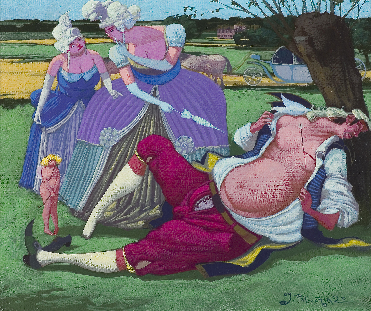Jacek Pałucha (Częstochowa 1966, mieszka w Częstochowie) studiował na Wydziale Malarstwa ASP w Warszawie, uzyskując w 1993 dyplom w pracowni prof. Wiesława Szamborskiego. Równolegle był założycielem i liderem zespołów: "Formacja Nieżywych Schabuff", "Furmanka", "Superpałka i najeźdźcy z kosmosu", autorem tekstów i muzyki ich piosenek. Projektował również okładki i oprawę graficzną płyt i wydawnictw dla wyżej wymienionych zespołów, a także m. in. dla "Kultu". Jest autorem ilustracji do książki Grażyny Treli "Dobry mężczyzna to martwy mężczyzna". Grał główną rolę w filmie Łukasza Wylężałka "Balanga". Wystawia od 1993 w kraju i za granicą. Stylistyka i tematyka jego obrazów, zbliżona typem humoru do twórczości Jerzego Dudy-Gracza, zjednała mu popularność wśród zwolenników sztuki przedstawiającej, anegdotycznej i prześmiewczej wobec przywar współczesnego człowieka.