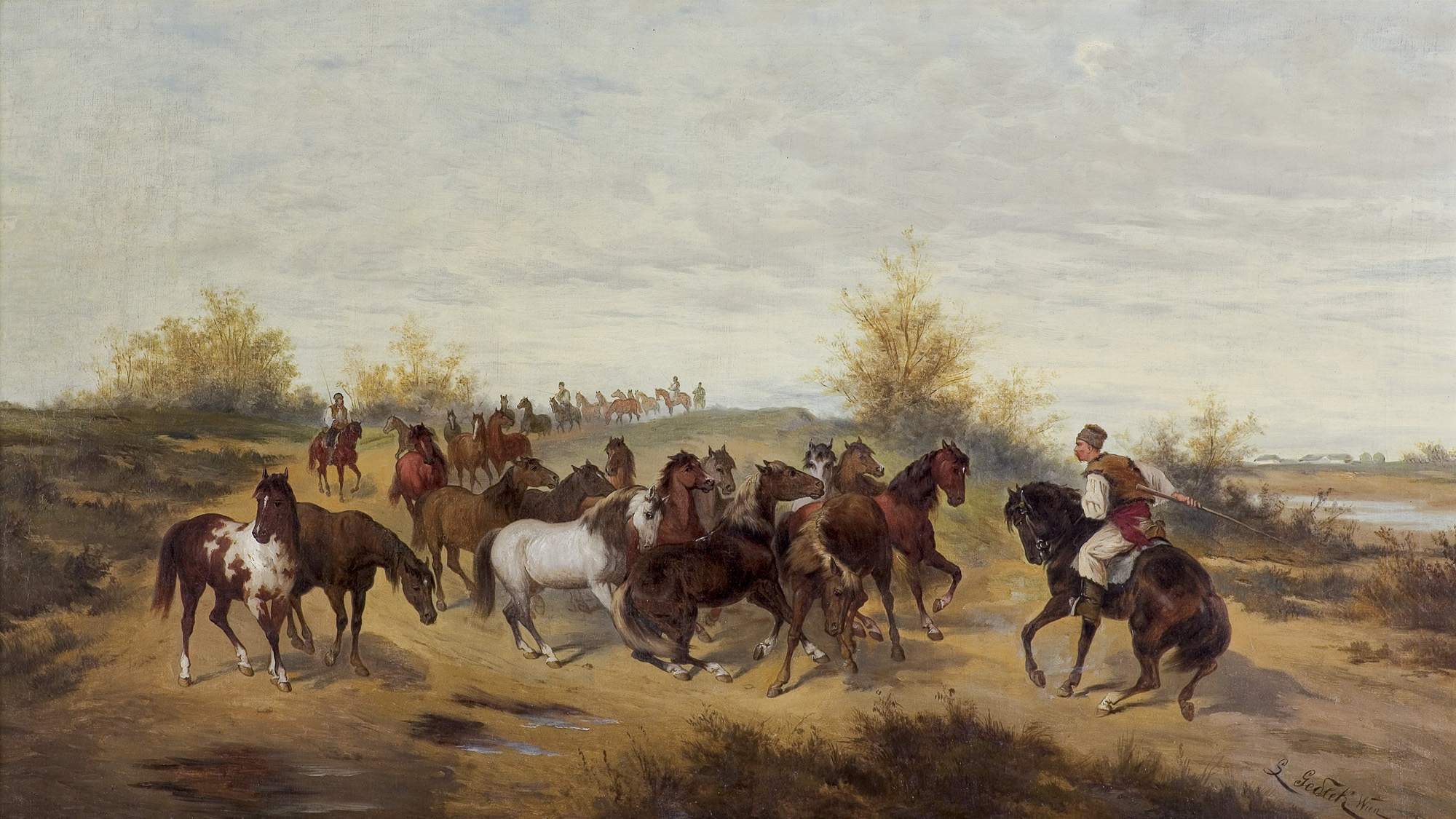 Ludwik Gędłek (Kraków 1847 - Wiedeń 1904) rozpoczął studia artystyczne w krakowskiej Szkole Sztuk Pięknych pod kierunkiem Władysława Łuszczkiewicza, a w latach 1872-1877 kontynuował je w Akademii wiedeńskiej u Eduarda Lichtenfelsa i Carla Wurzingera. Już w roku 1863 debiutował na wystawie w krakowskim TPSP, gdzie później wystawiał jeszcze kilkakrotnie. Stale mieszkał w Wiedniu, skąd wysyłał obrazy także na wystawy do TPSP we Lwowie, do Salonu Aleksandra Krywulta w Warszawie oraz do Drezna. Malował przede wszystkim sceny rodzajowe i batalistyczne z częstym motywem koni, a także krajobrazy, głównie z okolic Krakowa. Obrazy artysty znajdują się, m.in. w Muzeum Narodowym w Warszawie, Lwowskiej Galerii Obrazów i Polskim Muzeum w Chicago