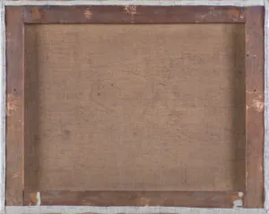 na krosnach ślady po dwóch nalepkach wystawowych oraz nieczytelna pieczęć w jęz. rosyjskim z l. 1920.-1940.: Komissija | po kontroliu | [za wywozom – nieczytelne] za granicu | priedmietow | iskusstwa i stariny [Komisja ds kontroli wywozu za granicę przedmiotów sztuki i starożytności]