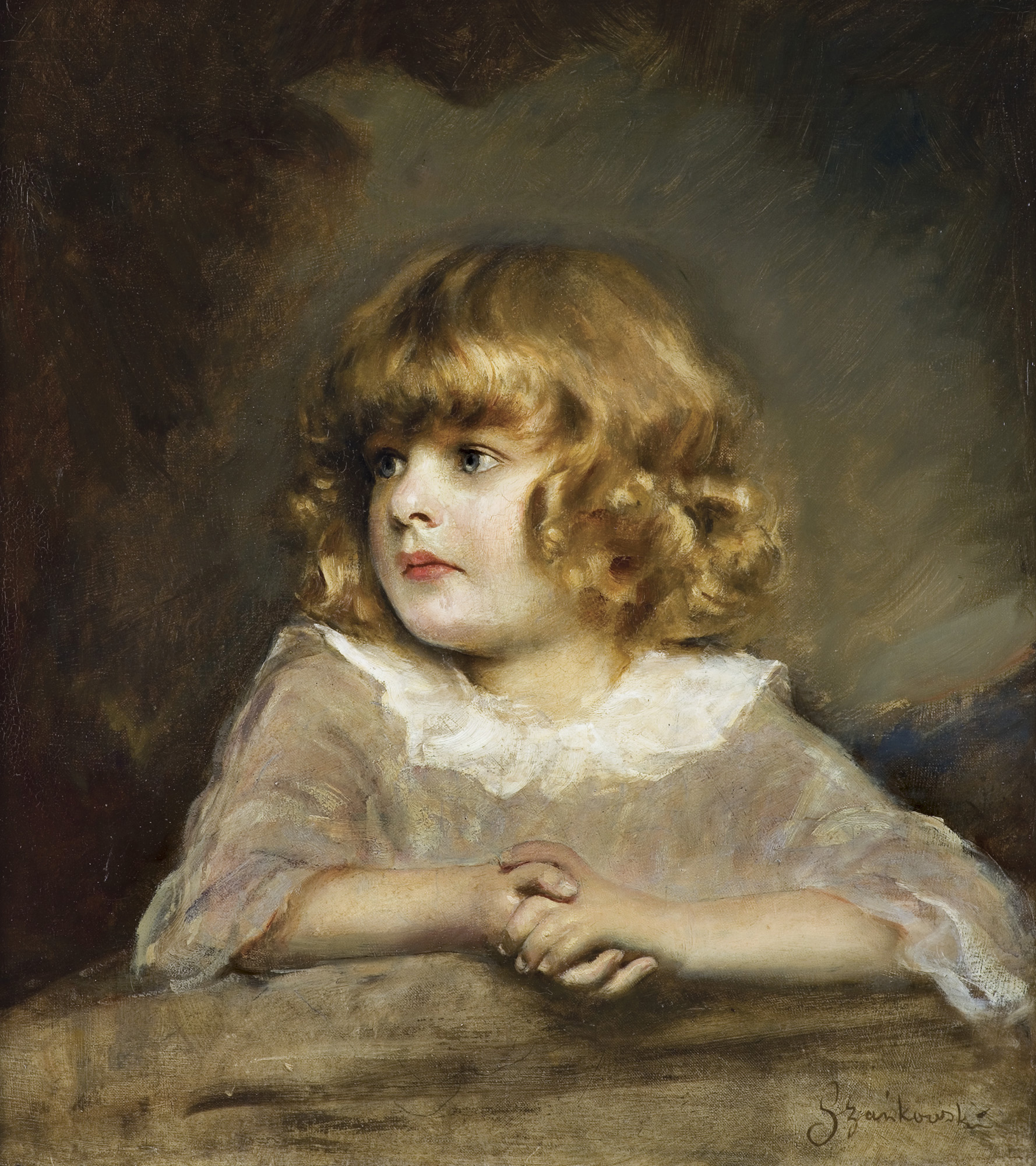 Bolesław Szańkowski (Warszawa 1873 - Fischbachau w Bawarii 1953), popularny malarz-portrecista, studiował w krakowskiej Szkole Sztuk Pięknych (1891-1894), w Akademii monachijskiej u Johanna C. Hertericha (1894) oraz w Académie Colarrosi i Académie Julian w Paryżu (1896-1898). W 1912 zamieszkał na stałe w Monachium, skąd wielokrotnie wyjeżdżał do Francji, Belgii, Anglii i Szkocji, Stanów Zjednoczonych. Ceniony portrecista, malował wiele reprezentacyjnych portretów osób z arystokracji oraz europejskich rodzin panujących. Portretował, m.in. Ignacego Paderewskiego, księżnę Daisy von Pless, Radziwiłłów, Potockich, rodzinę cesarską w Berlinie i królewską rodzinę w Rumunii. Chętnie malował idealizowane portrety pięknych i wytwornych dam oraz, bardziej kameralne, wdzięczne portrety dziecięce, wielokrotnie portretując także swoje córki - Adę i Helenę. Na paryskim Salonie w 1900 roku uzyskał mention honorable za obraz Portret oficera. Brał udział w wielu wystawach we Niemczech i Austrii; często nadsyłał obrazy na wystawy krajowe; w 1928 i 1939 miał duże wystawy indywidualne w warszawskiej Zachęcie.